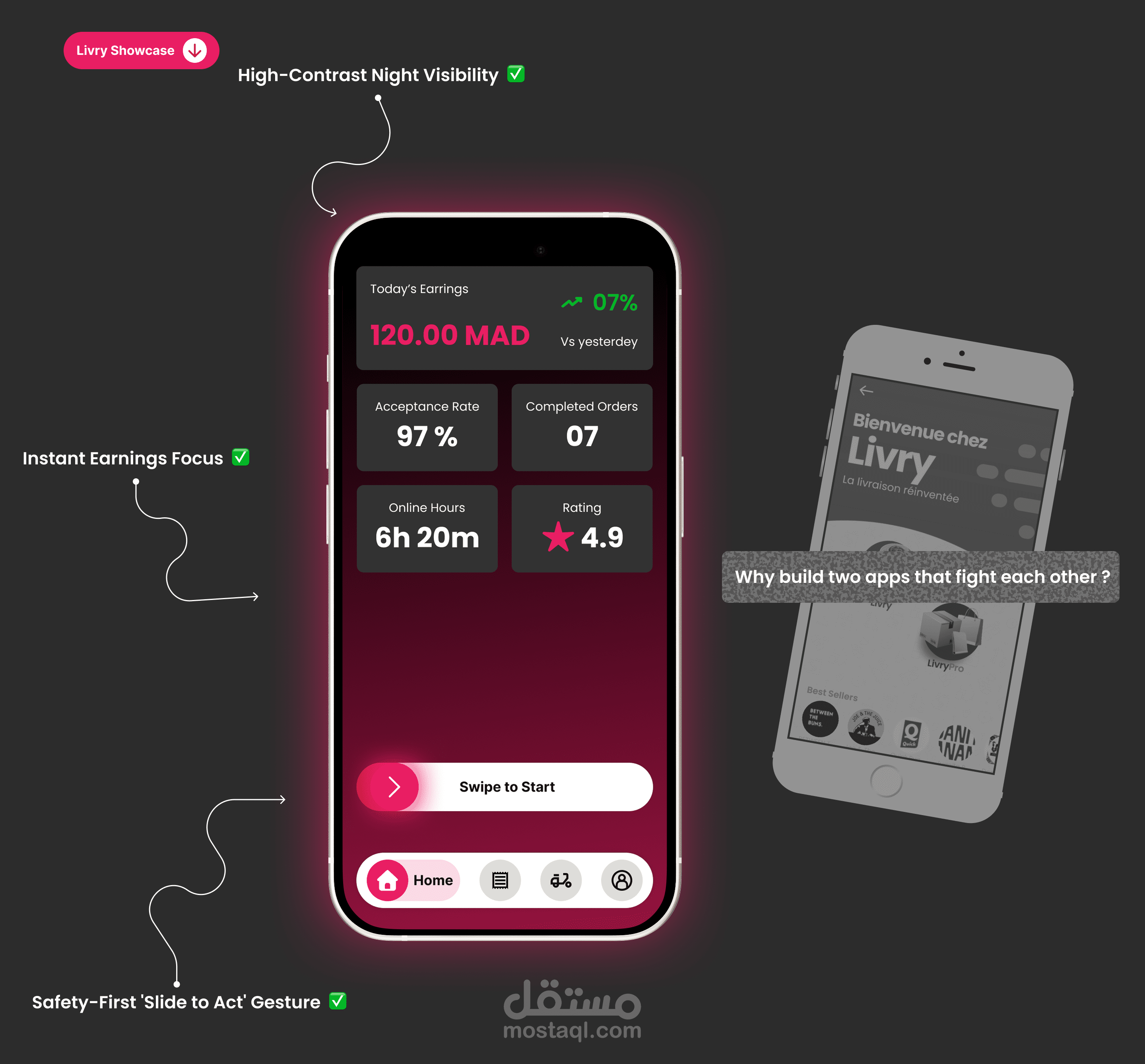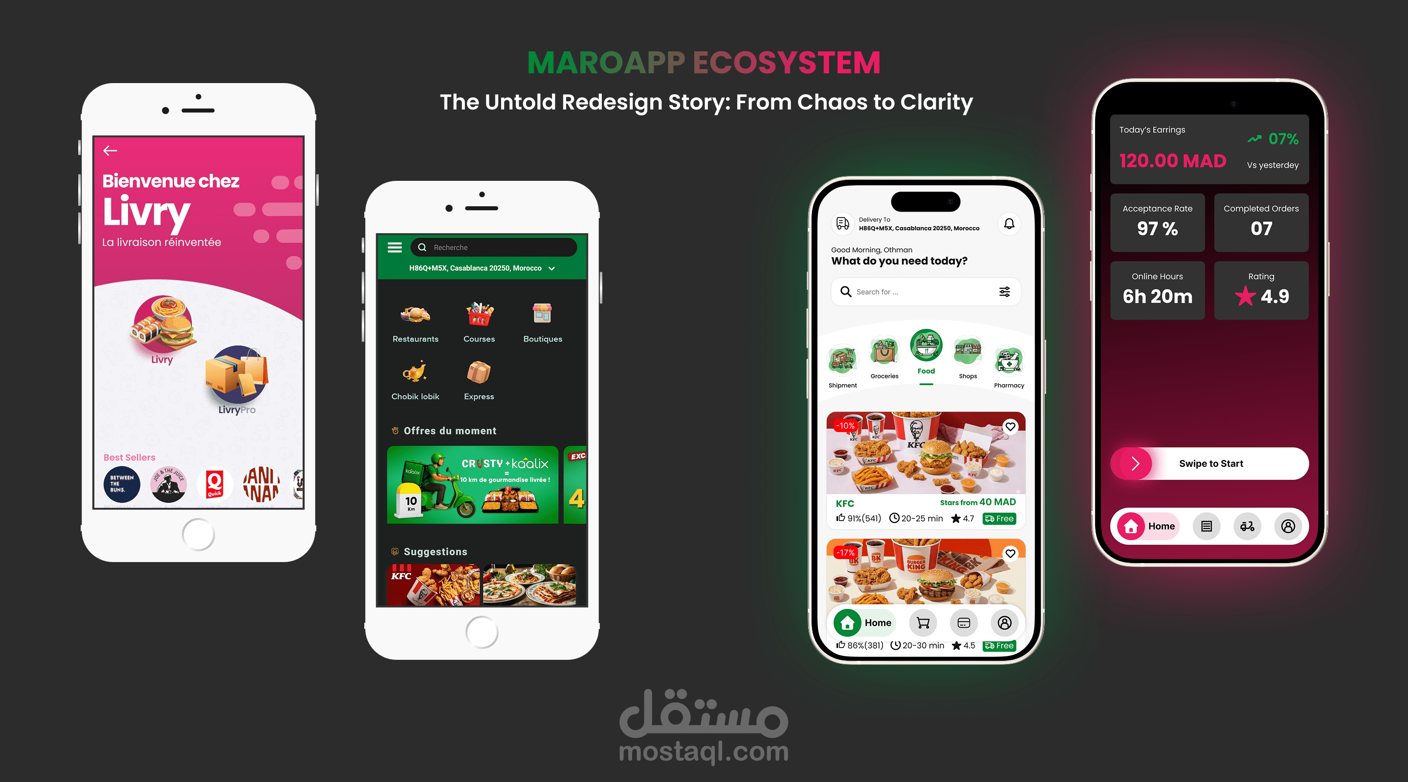 A strategic redesign of the Maroapp ecosystem, solving a brand identity crisis by splitting functionality into two specialized experiences: 'Kaalix' as a lifestyle Super App, and 'Livry' as a high-performance logistics tool. This case study explores the journey from visual chaos to structural clarity. Disclaimer: This is a personal concept project for educational and portfolio purposes only. I am not affiliated with or contracted by Maroapp, Kaalix, or Livry.
