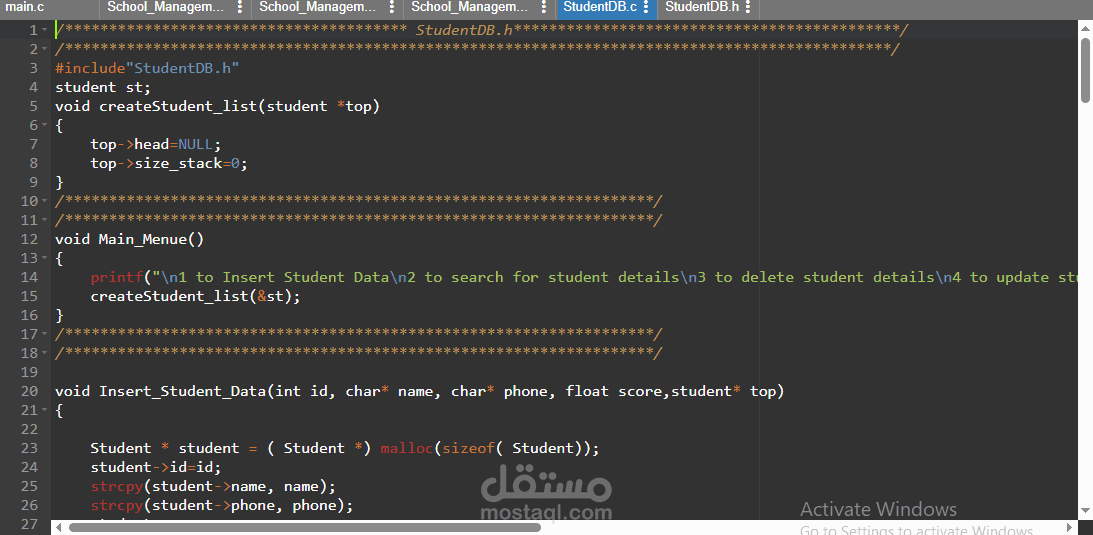 school system management using C language