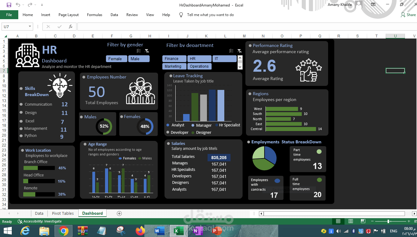 * تحليل بيانات الموارد البشرية واستخراج مؤشرات الأداء الرئيسية (HR KPIs).
