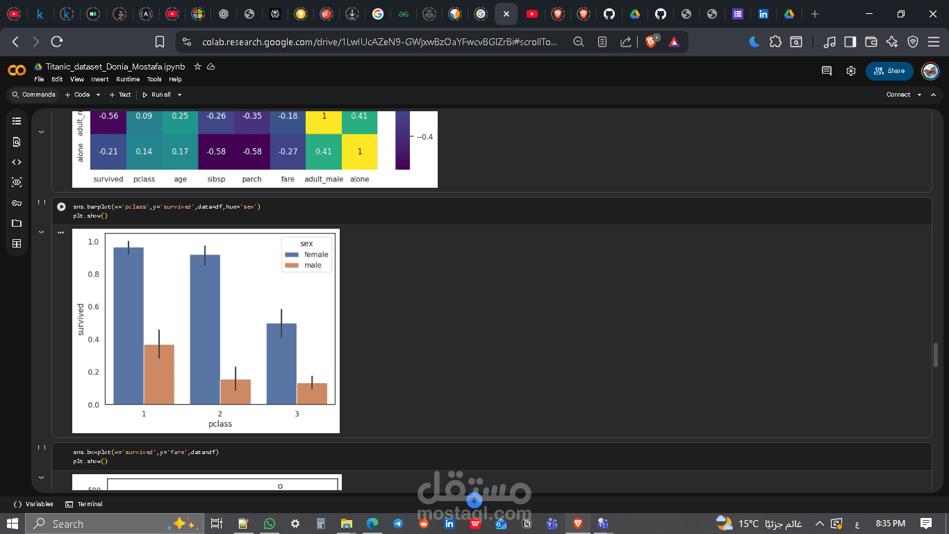 وصف المشروع: يركز هذا المشروع على مهارات "تنظيف البيانات" و"هندسة الخصائص" (Feature Engineering). الهدف هو تحليل بيانات ركاب سفينة تايتانيك لتحديد العوامل التي ساهمت في نجاة بعض الركاب دون غيرهم (مثل العمر، الجنس، والدرجة)، وبناء نموذج لتوقع النجاة.