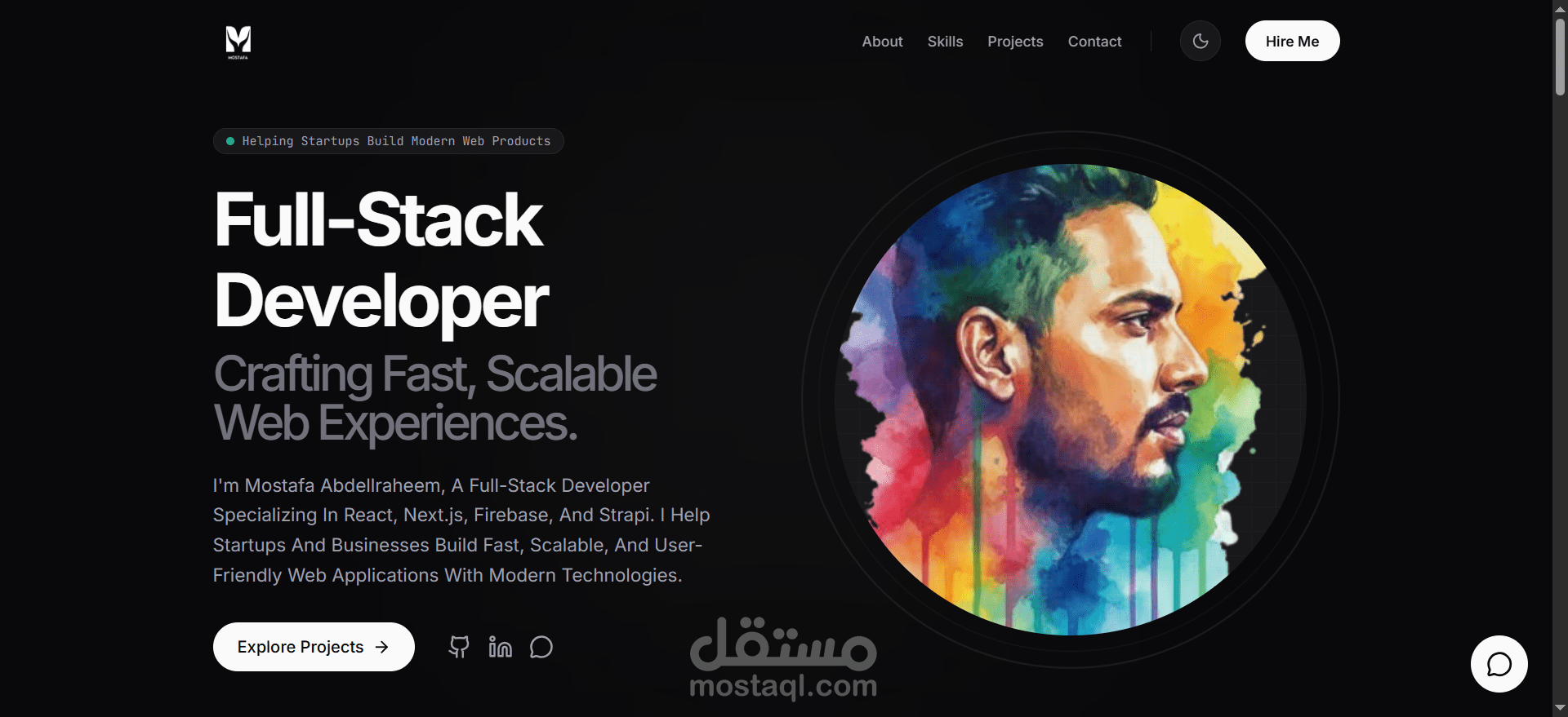 تم بناء هذا المشروع ليكون أكثر من مجرد "معرض أعمال" تقليدي؛ فهو منصة ويب متكاملة تستعرض أحدث تقنيات تطوير الواجهات الأمامية (Frontend Engineering) مع دمج تقنيات الذكاء الاصطناعي لتوفير تجربة تفاعلية فريدة للزوار.