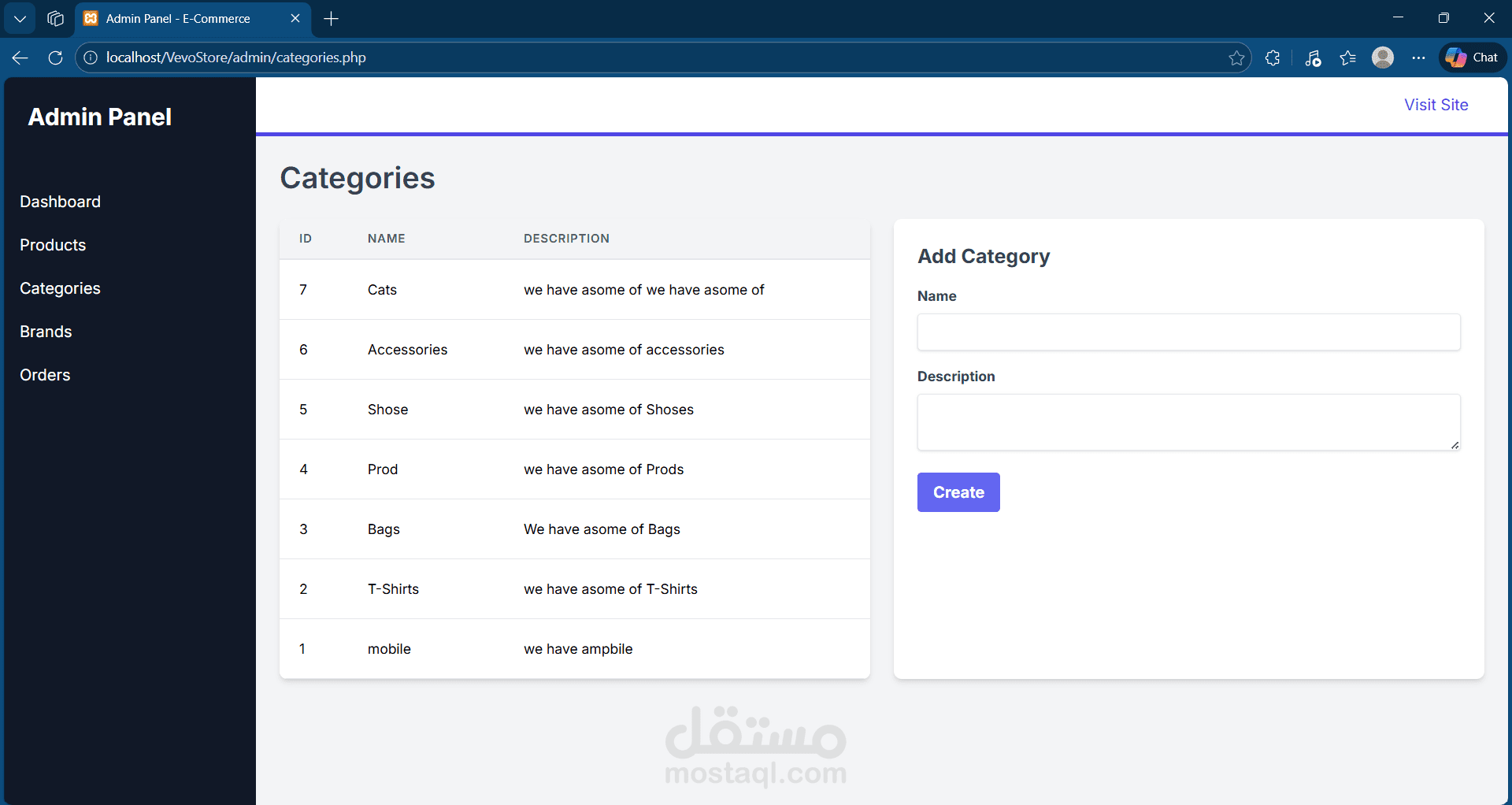 Vevo Store هو متجر إلكتروني متكامل تم تطويره باستخدام PHP Native و MySQL.