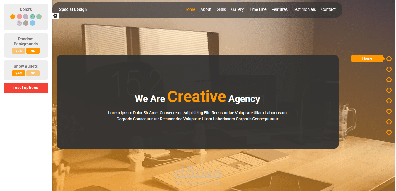تحتوي الصفحة على Side Bullets للتنقل بين الأقسام بسهولة.