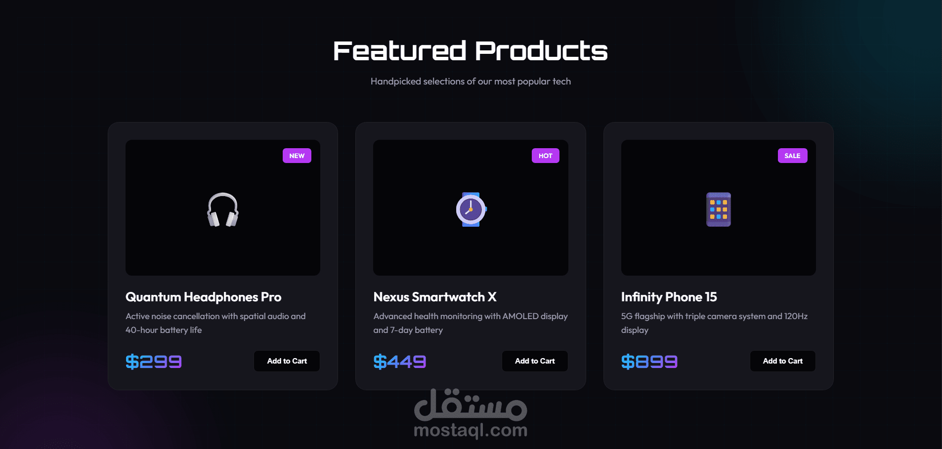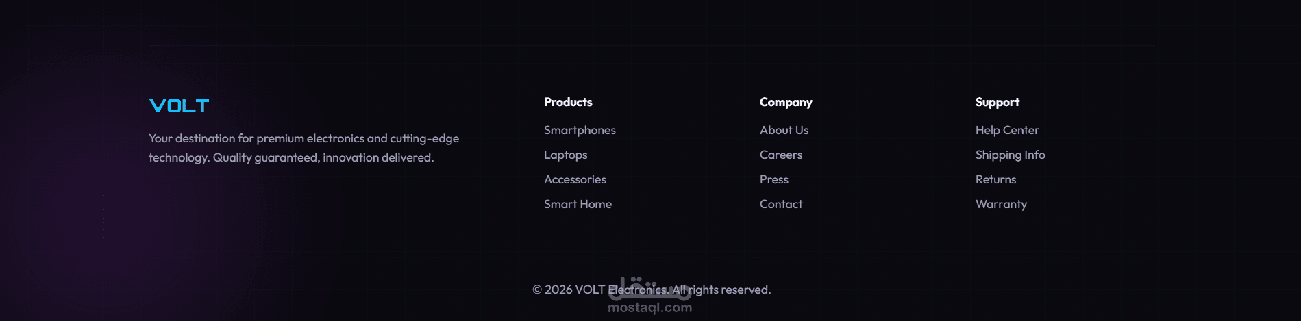 صفحة هبوط لموقع بيع اليكترونيات باستخدام html, css
