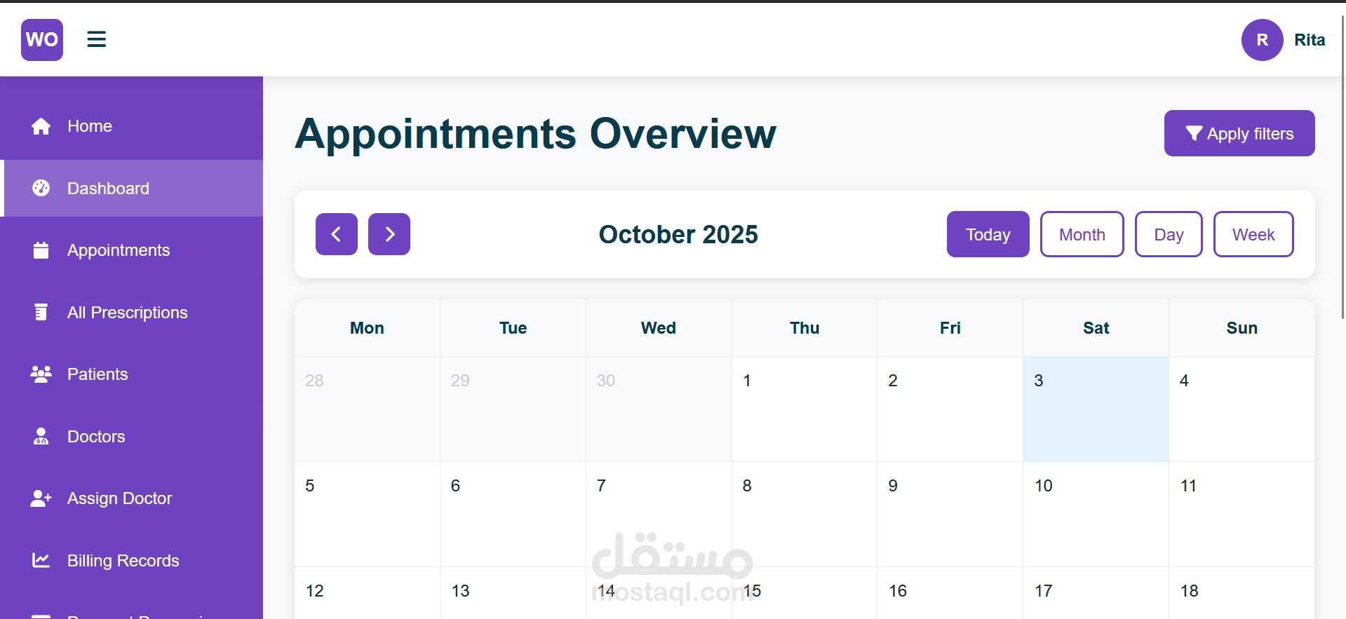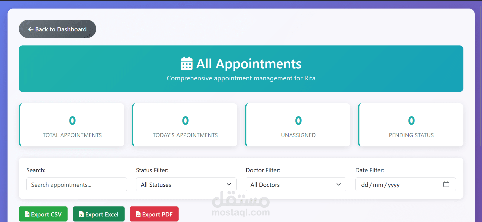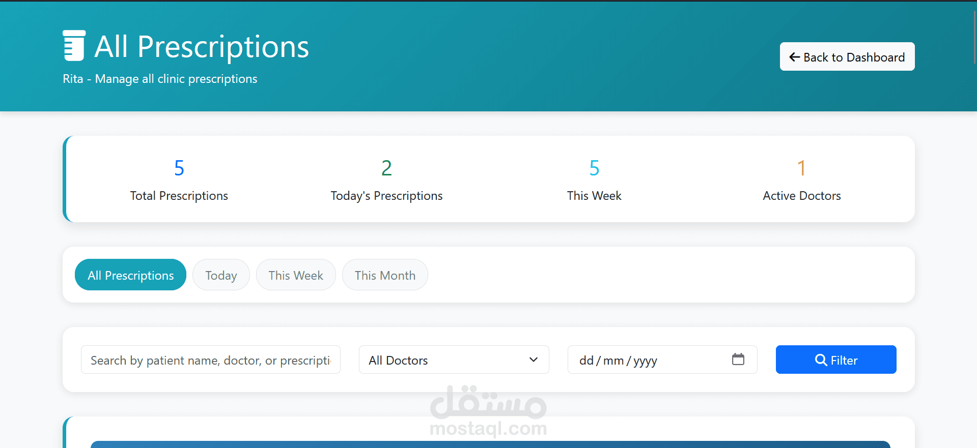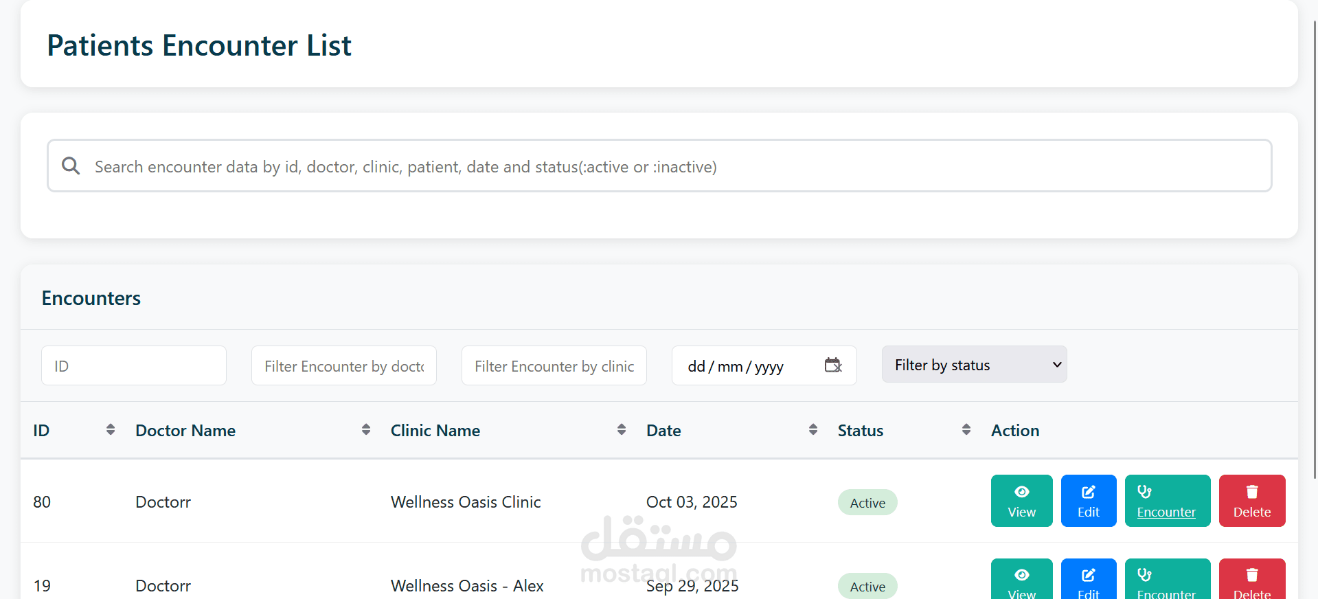 قوائم مرضى للطبيب/الاستقبال مع بحث وفلاتر
