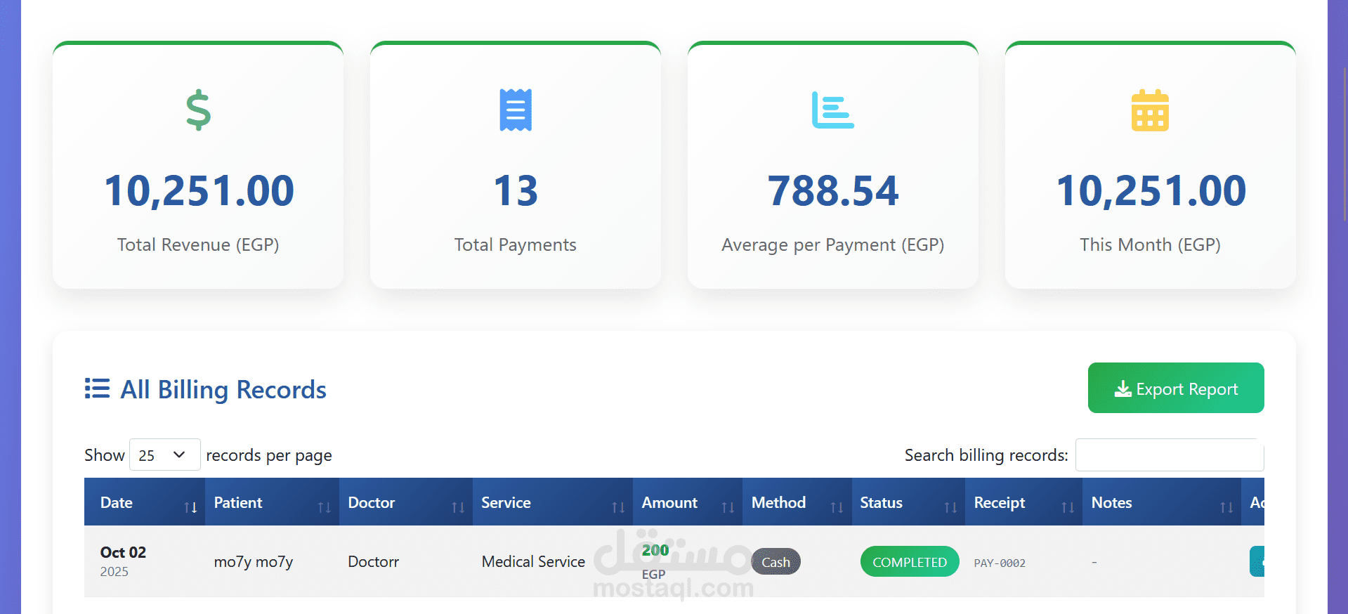 الطبيب يعرض إيراداته ومدفوعات مواعيده