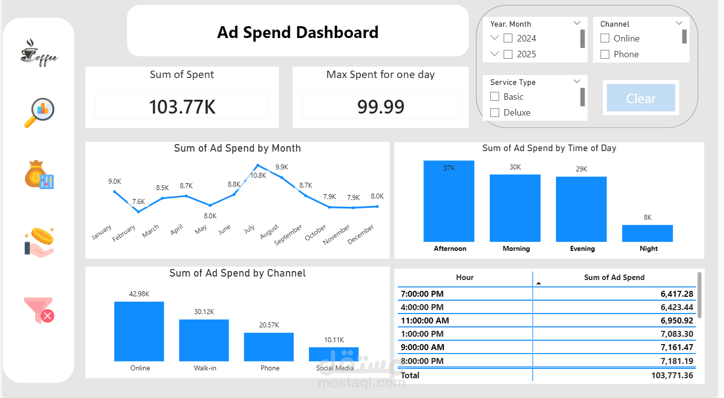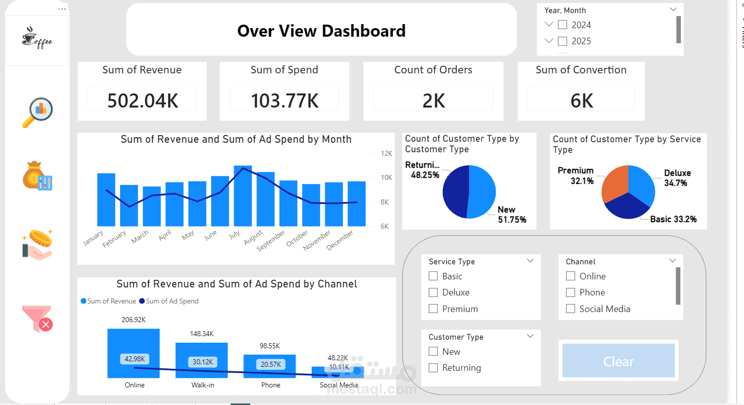 يركز هذا المشروع على تحليل بيانات الأعمال واستخلاص الرؤى المهمة منها، ثم تحويلها إلى لوحات معلومات (Dashboards) تفاعلية تساعد في دعم اتخاذ القرار.