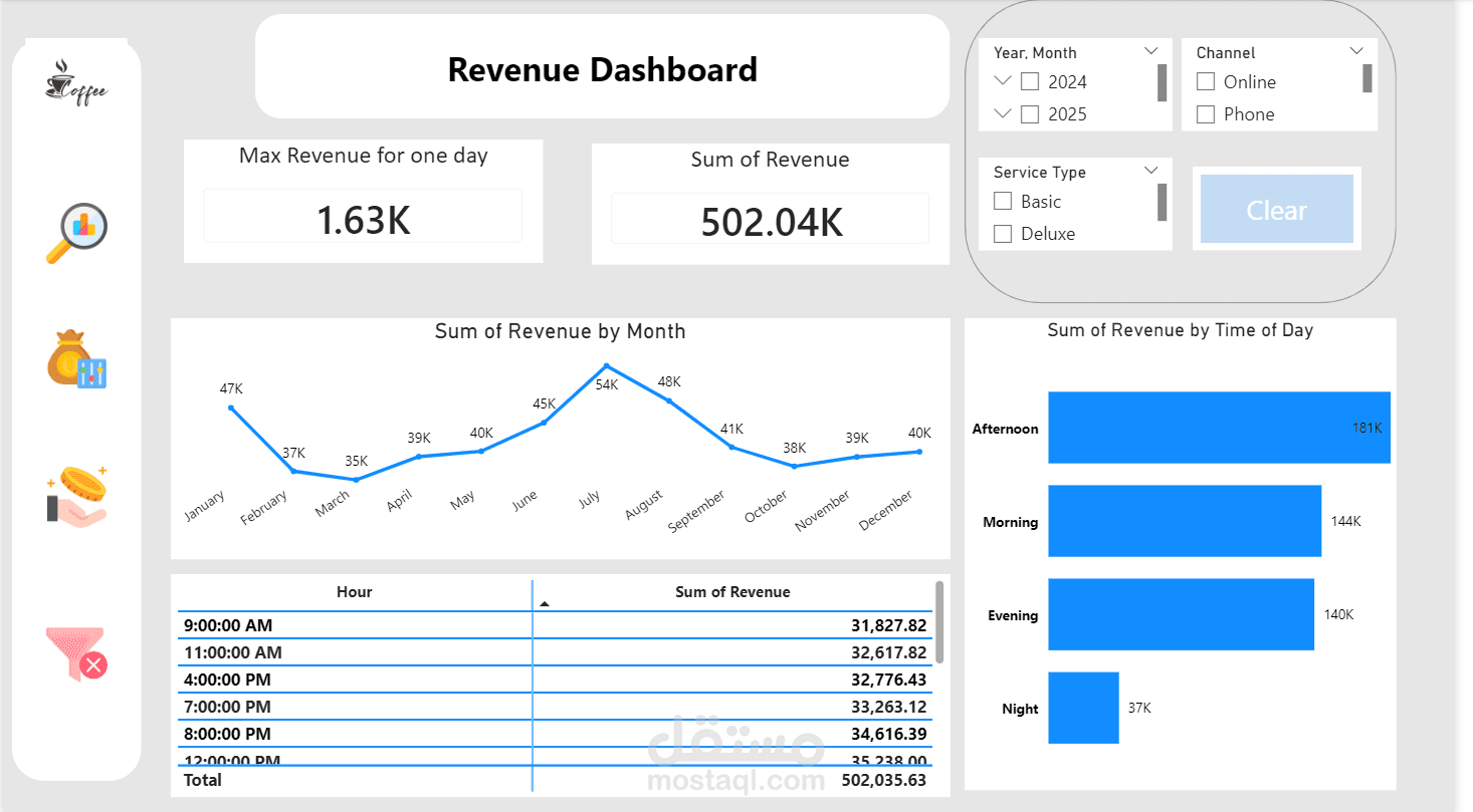 تصميم لوحات معلومات تفاعلية توضح المؤشرات الرئيسية (KPIs).