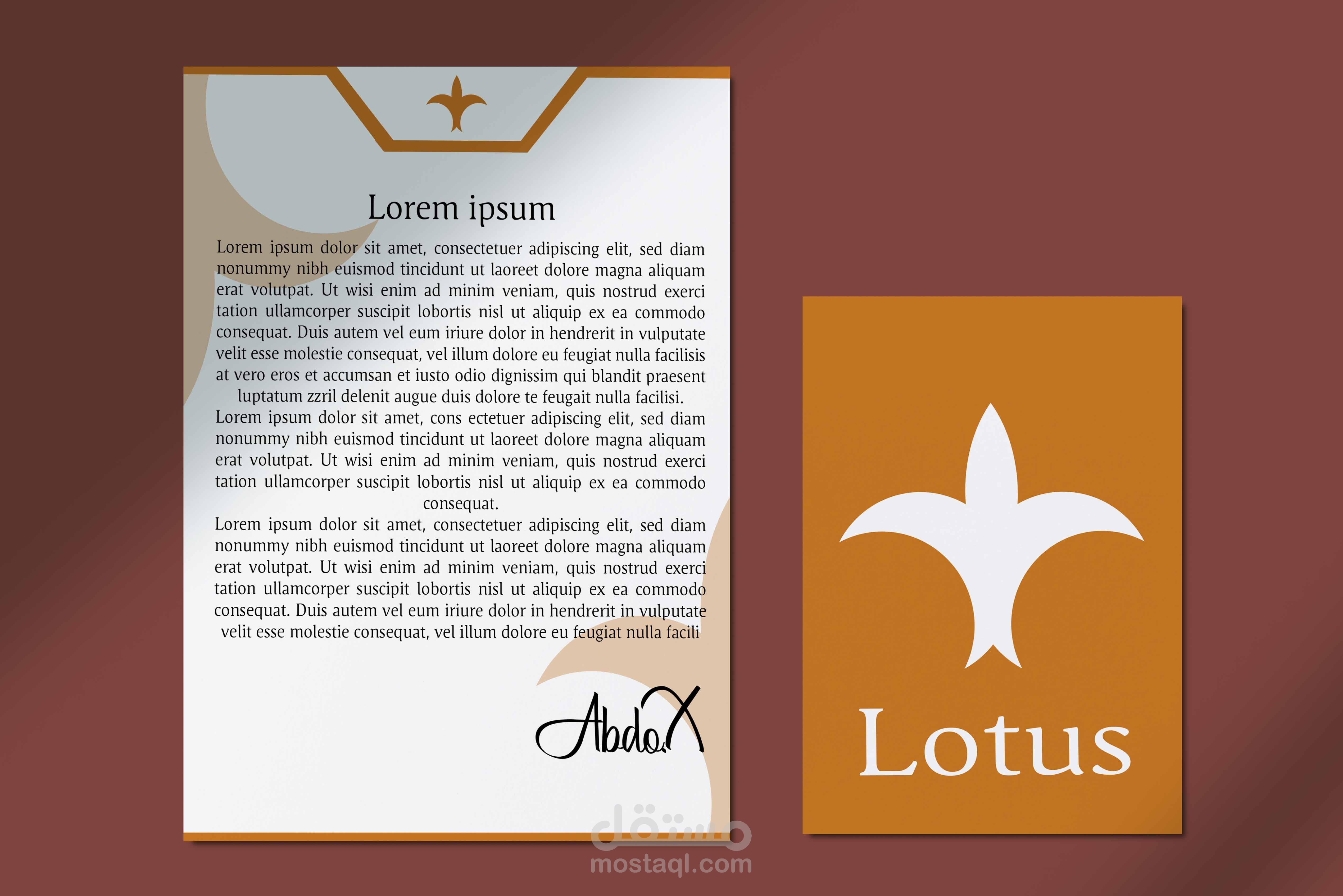 تصميم هوية بصرية متكاملة لعلامة تجارية باسم Lotus، تعتمد على أسلوب بسيط وأنيق يعكس الهدوء، التوازن، والاحترافية.