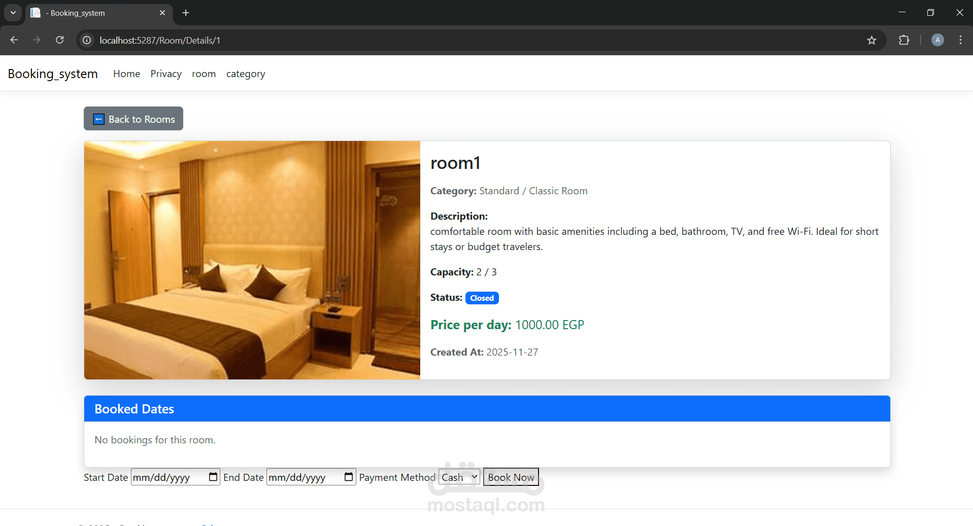 عرض الغرف المتاحة مع التفاصيل (السعر – السعة – الصور)