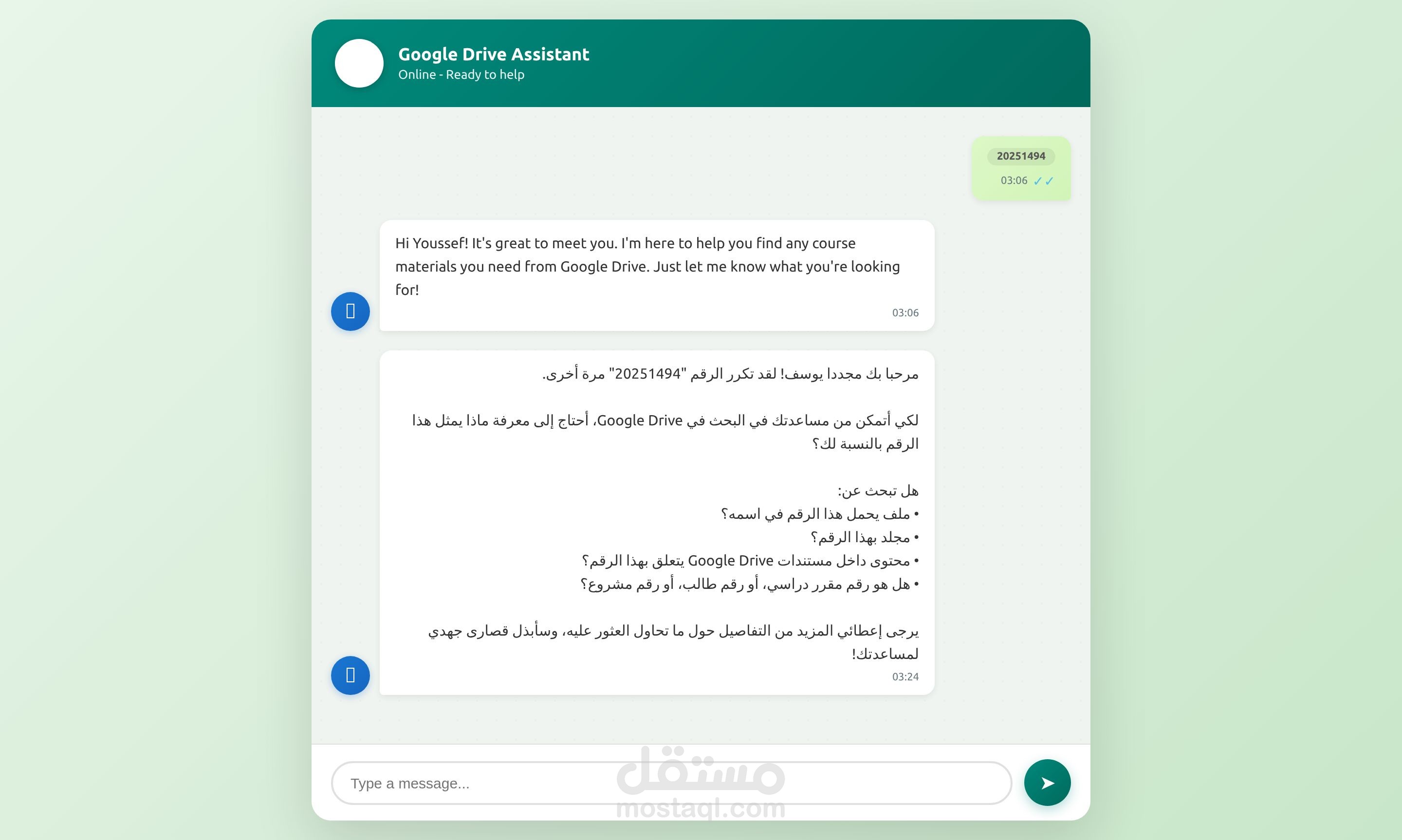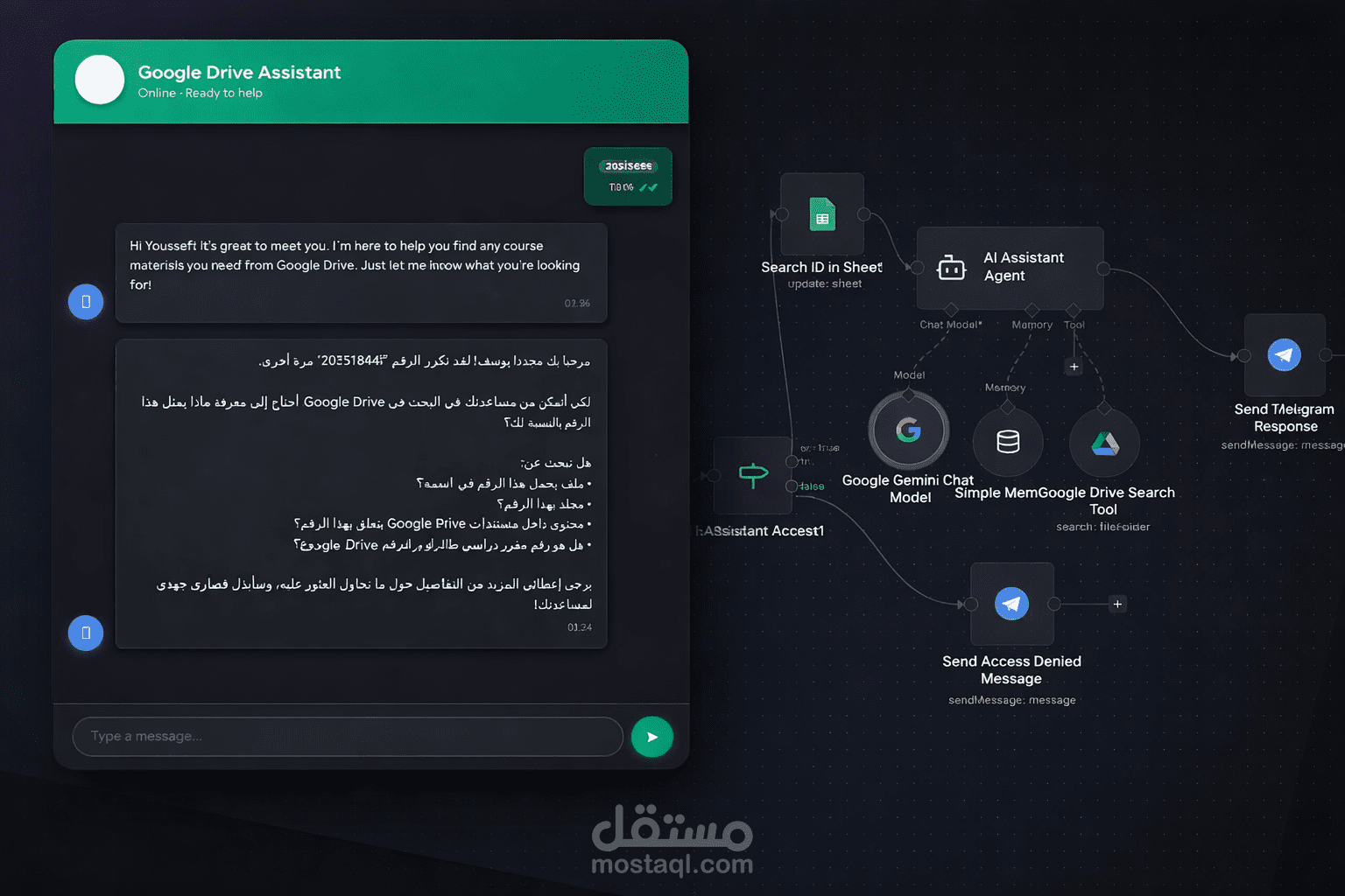مساعد ذكي (Gemini / OpenAI) يفهم نية العميل ويجيب بدقة.