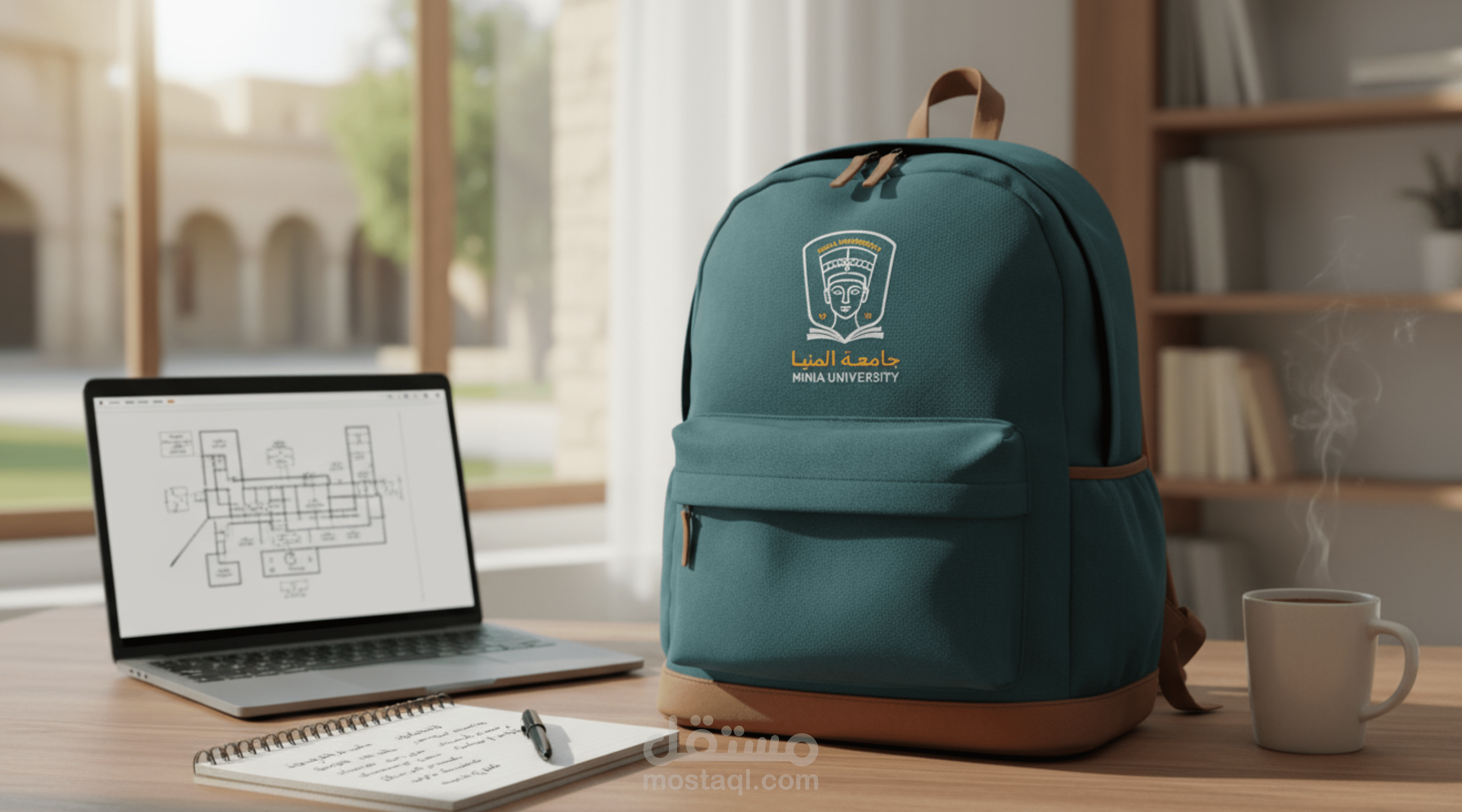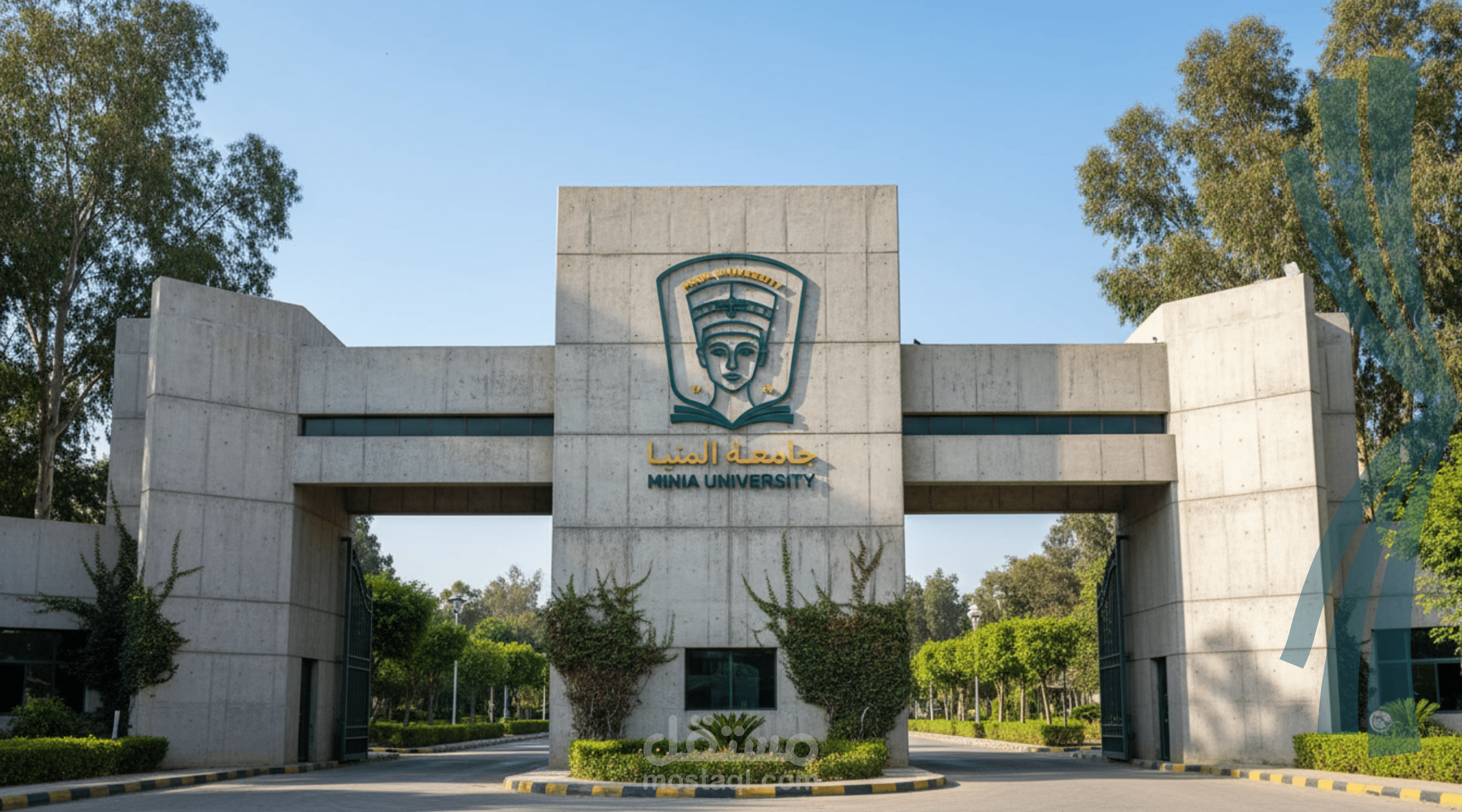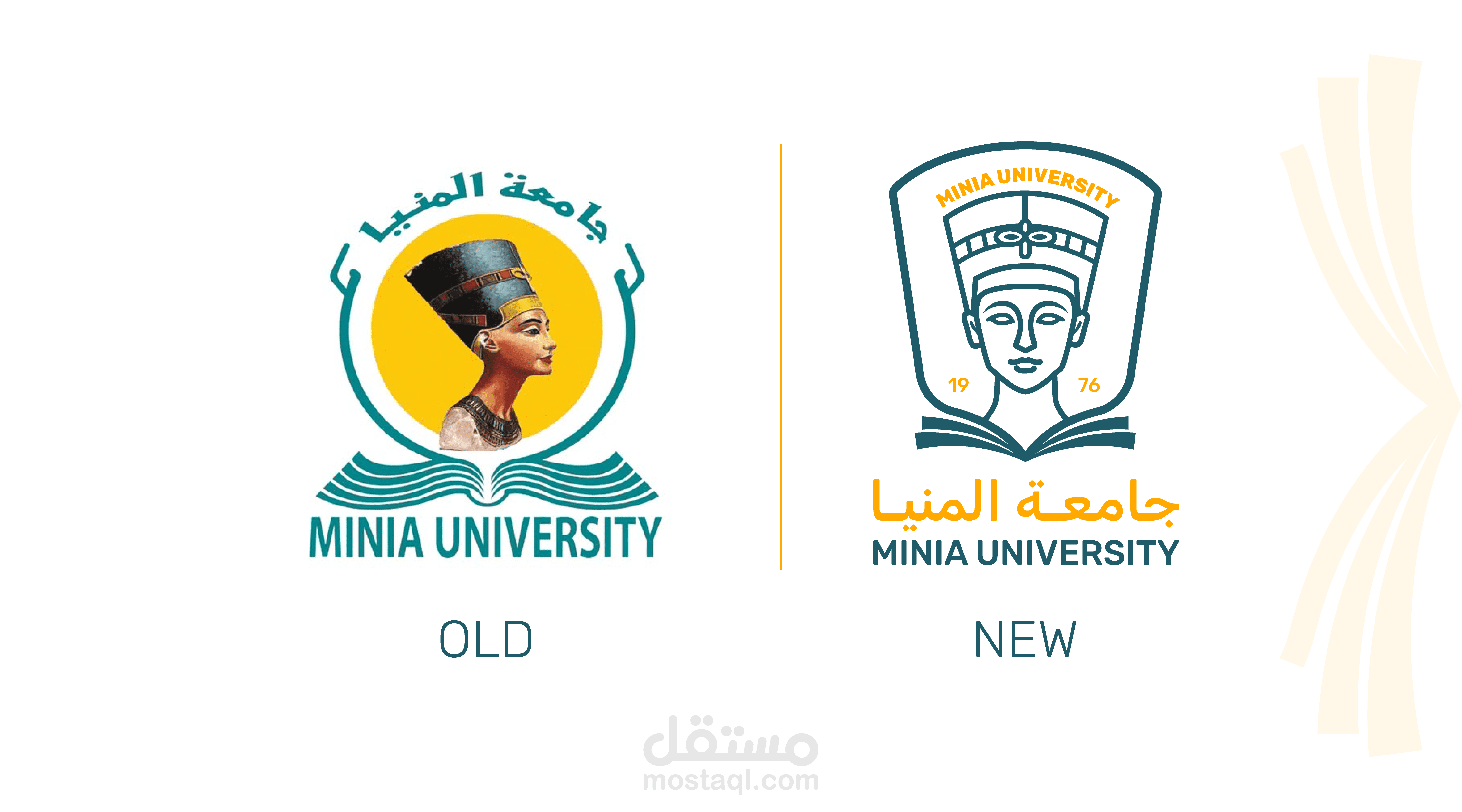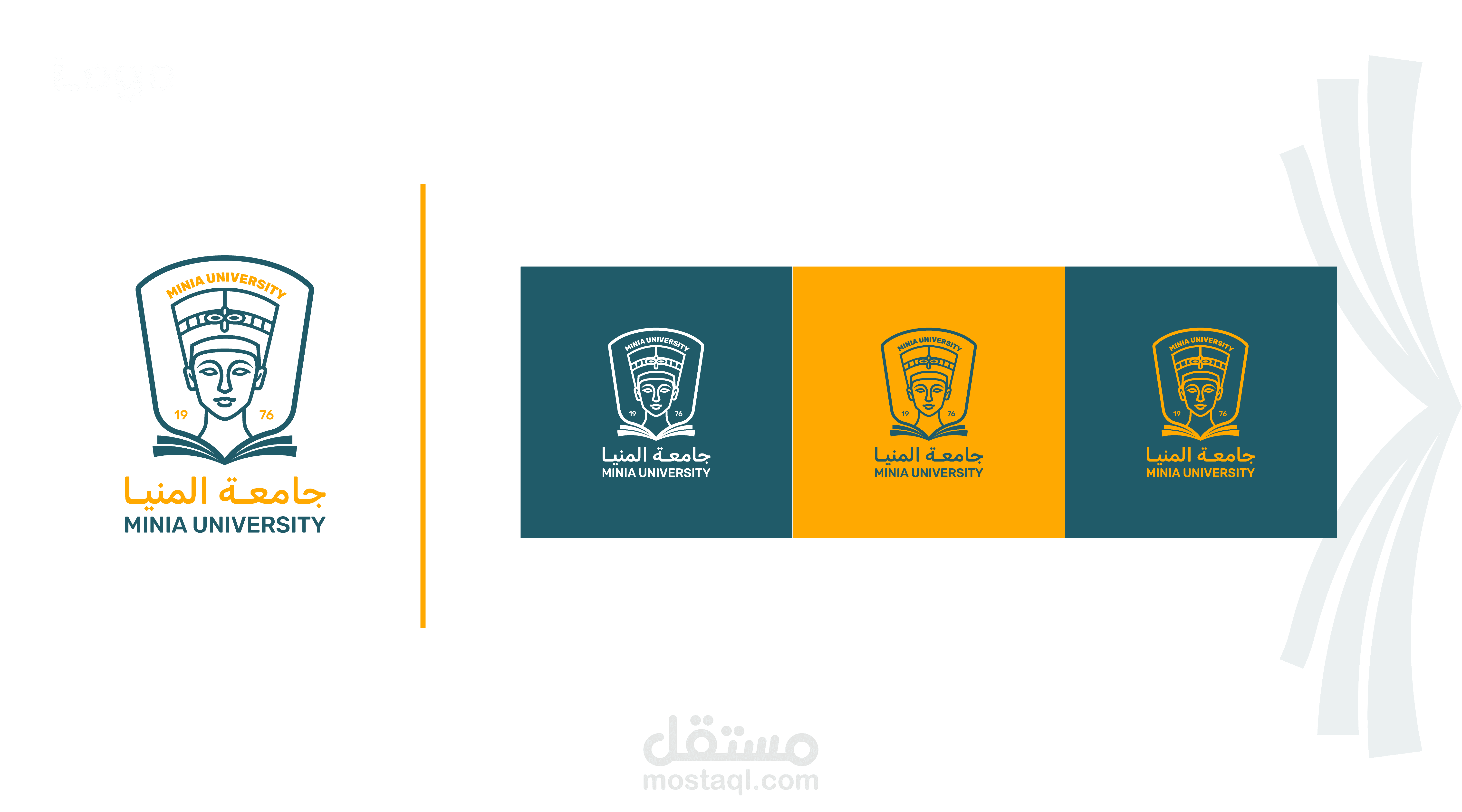 A formal logo design for Minia University that reflects the institution’s academic identity and historical depth through a modern visual approach. The design features Queen Nefertiti as a symbol of Egypt’s rich heritage, combined with an open book to represent knowledge, education, and intellectual growth.