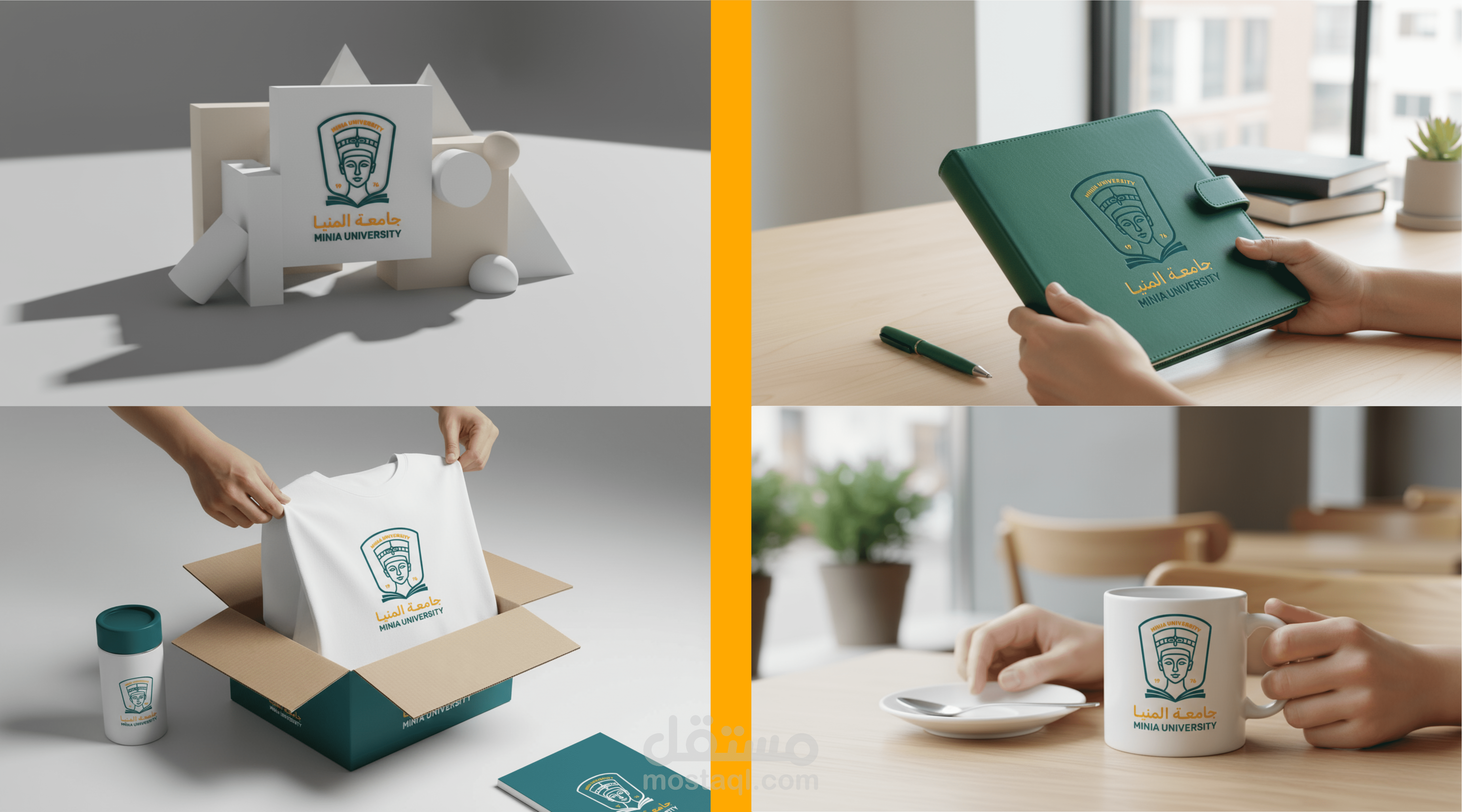A balanced and calm color palette was selected to convey credibility, stability, and professionalism. The integration of both Arabic and English typography highlights the university’s local roots and global outlook.