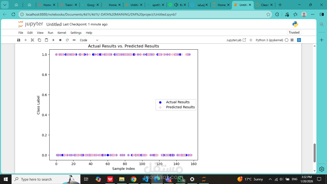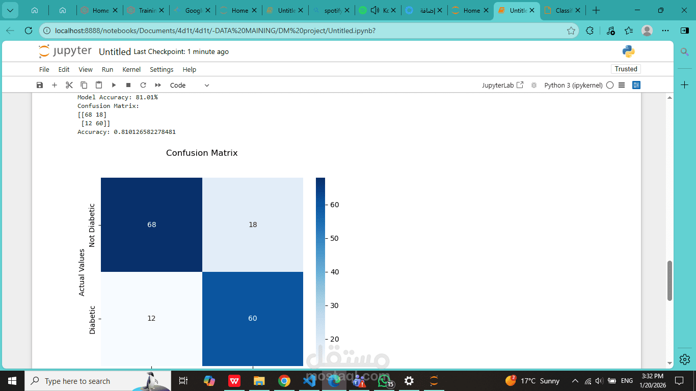تطوير لوحة معلومات تشخيصية مرئية (تتضمن مصفوفة الارتباك والمخططات المبعثرة) والتي تعمل على التحقق من أداء النموذج وتقديم رؤى صحية واضحة وقابلة للتنفيذ.