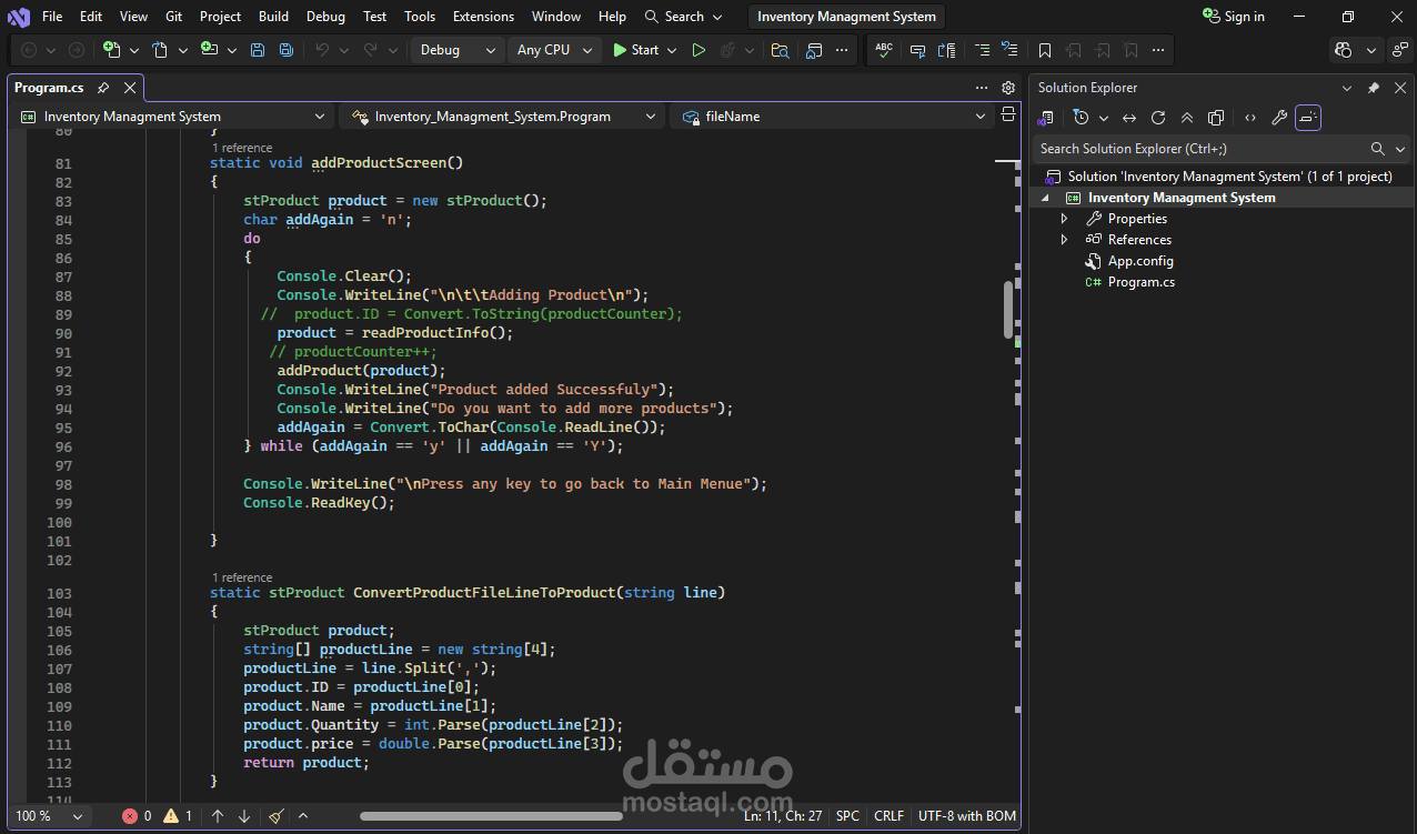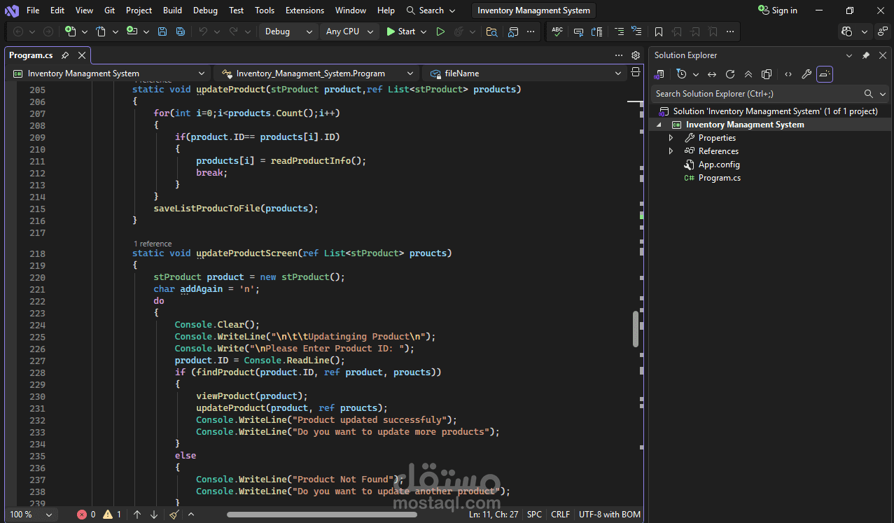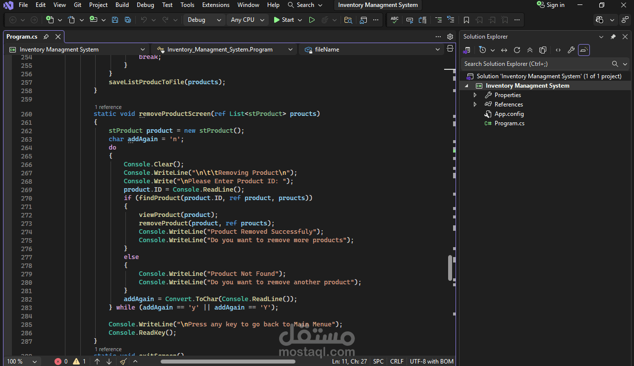Built using C# with a console-based interface and file handling for data storage, this project demonstrates structured programming, clean code, and practical problem-solving skills. It’s designed to provide a simple yet effective solution for managing inventory without unnecessary complexity.