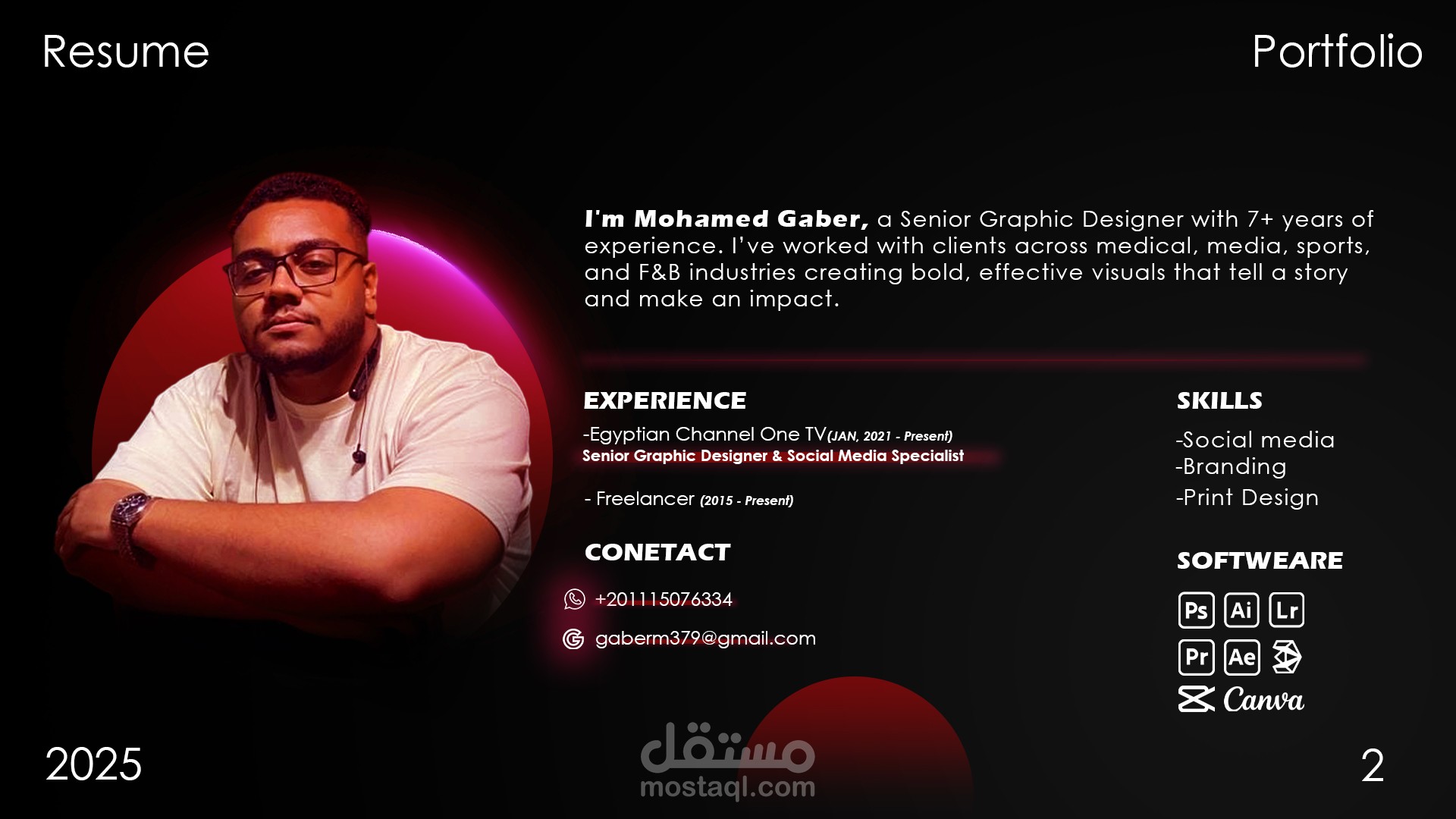 I'm Mohamed Gaber, a Senior Graphic Designer with 7+ years of experience. I’ve worked with clients across medical, media, sports, and F&B industries creating bold, effective visuals that tell a story and make an impact.