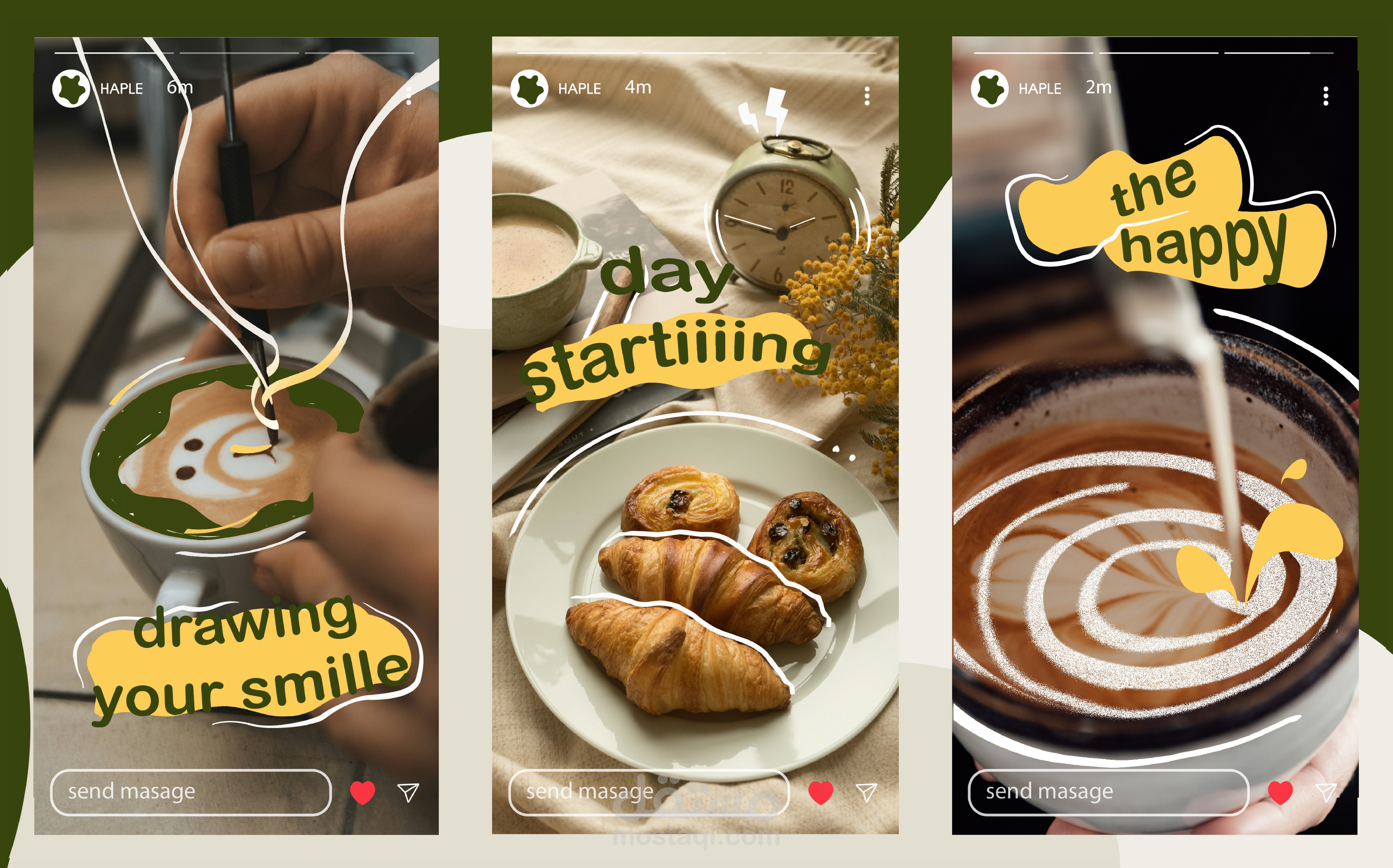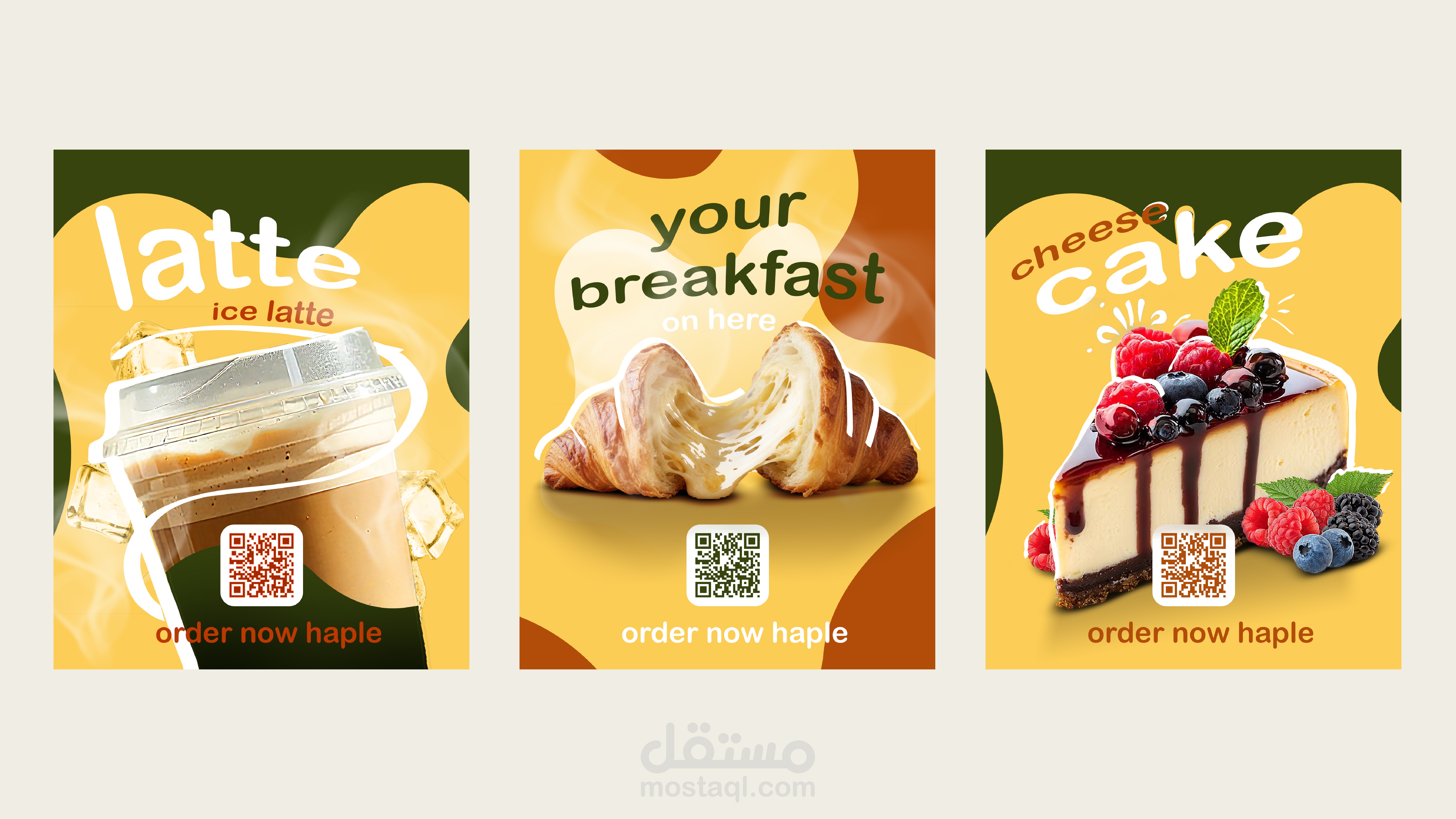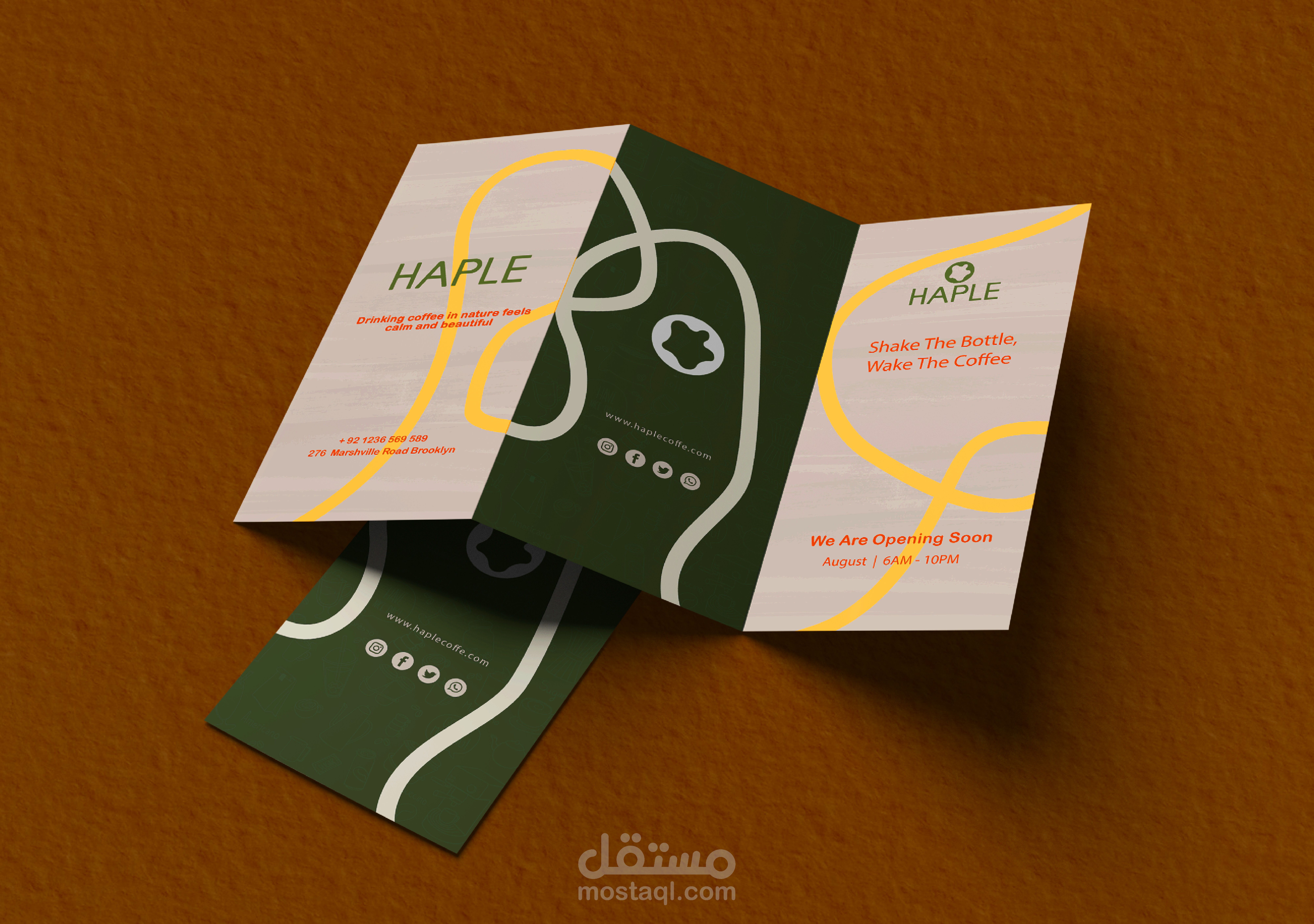 هوية بصرية متكاملة تعكس أجواء دافئة وودّية لمقهى Haple، وتشمل الشعار، الألوان، الخطوط، وتطبيقات السوشيال ميديا، مع الحفاظ على أسلوب بسيط وجذاب يعبر عن شخصية البراند ويقربه من الجمهور.