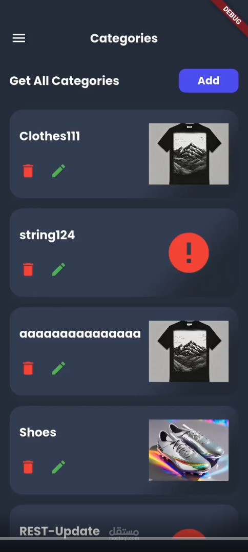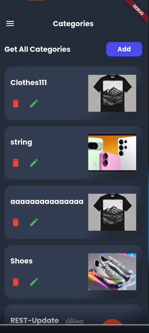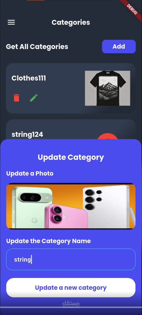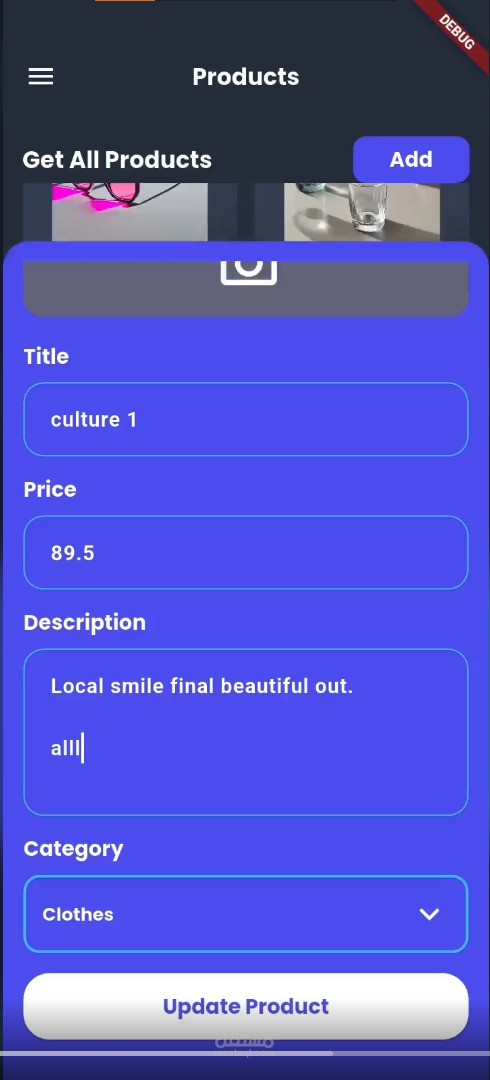 Products: إدارة المنتجات بالكامل مع تحديث البيانات والحذف.