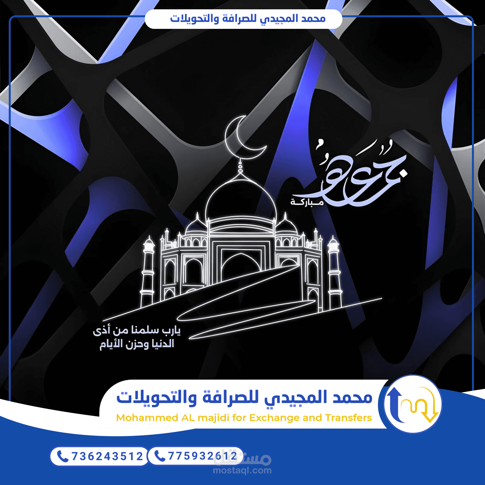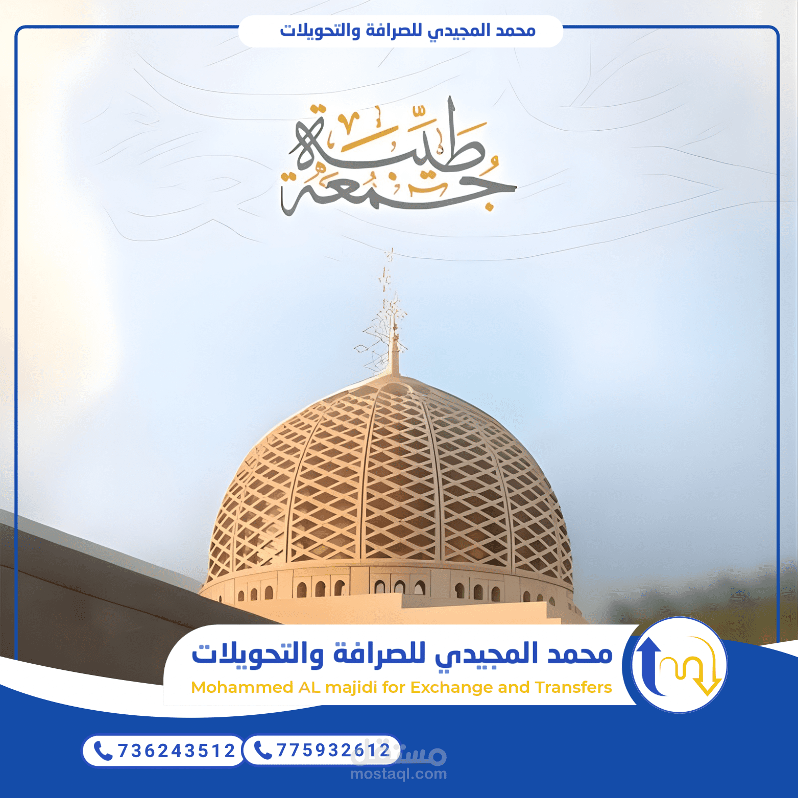 تصميم "سوشيال ميديا" رسمي وهادئ يجمع بين الطابع الروحاني ليوم الجمعة والهوية التجارية للشركة. يعتمد على النظافة البصرية (Clean Design) وتوظيف ألوان الشعار لتأكيد الهوية.