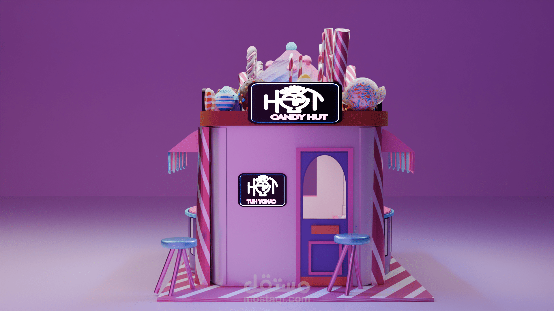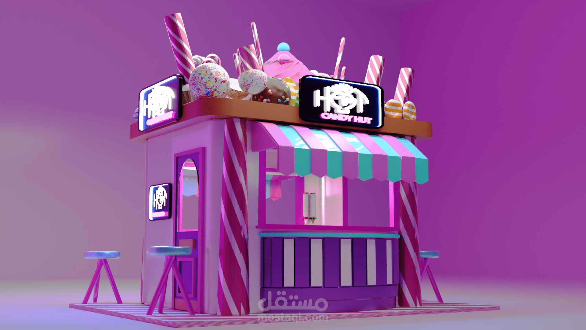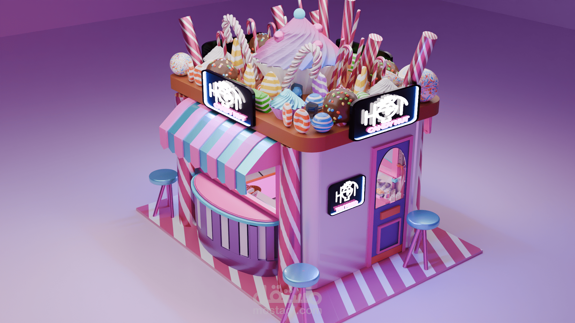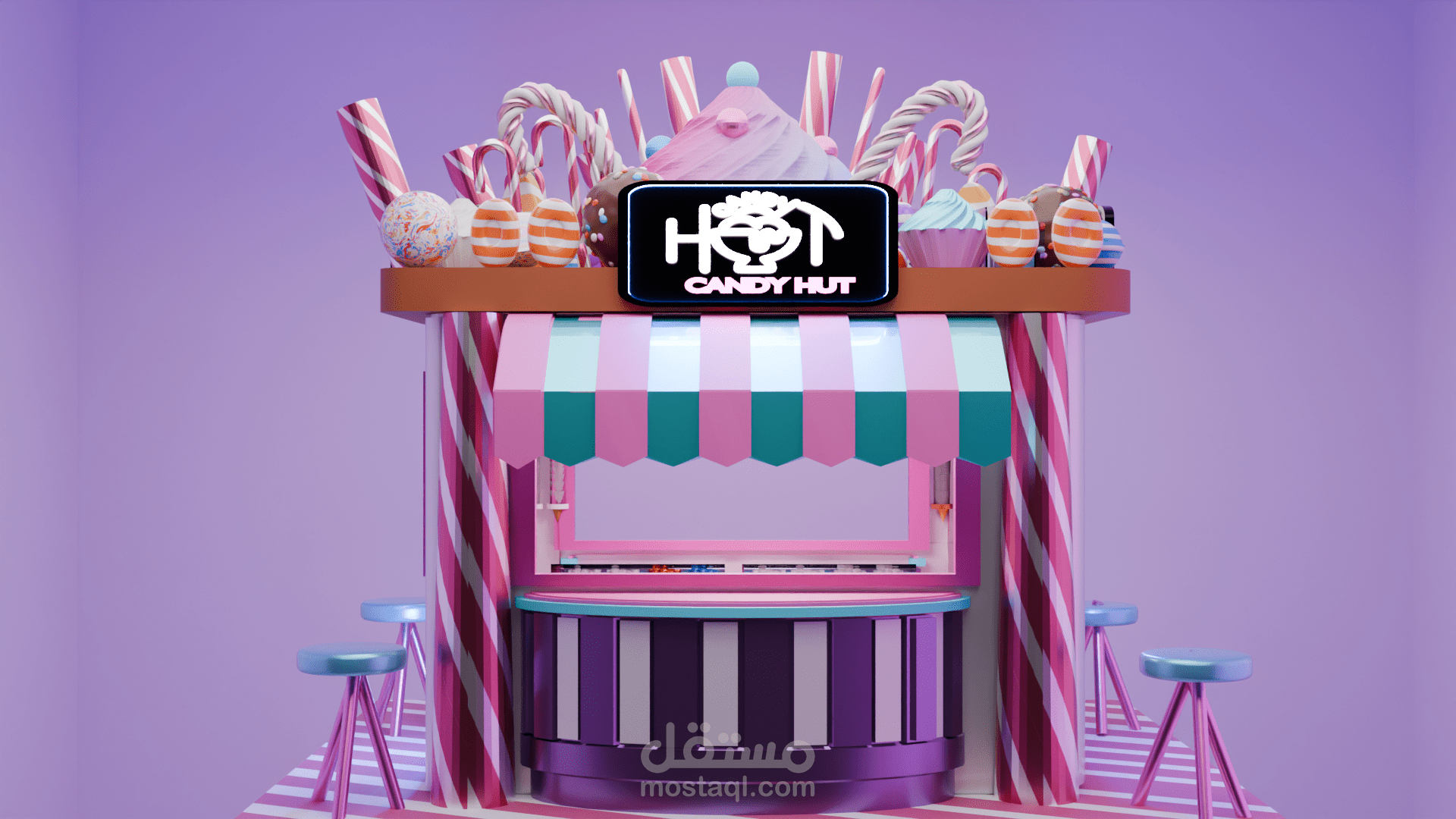تصميم بوث ثلاثى الابعاد لبراند candy hut