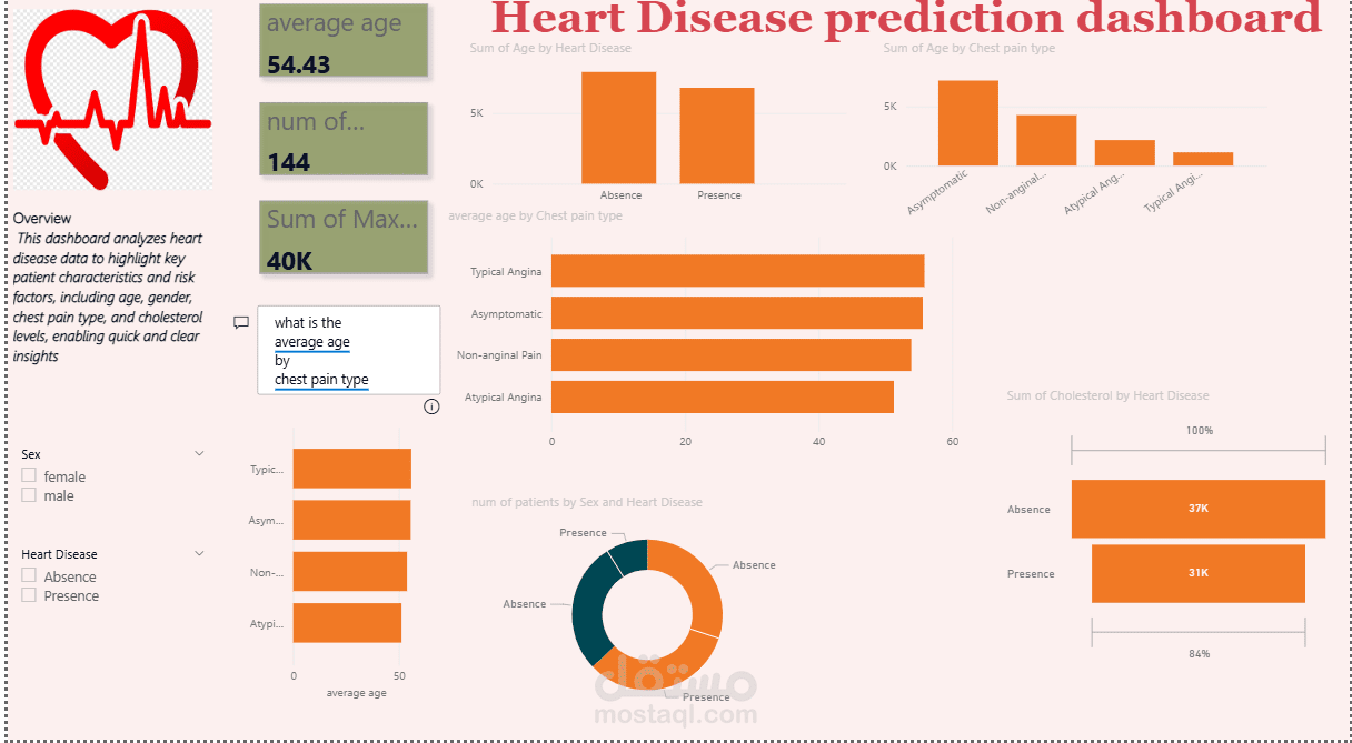 In this dashboard, I analyzed patient data to identify key factors related to heart disease, such as: