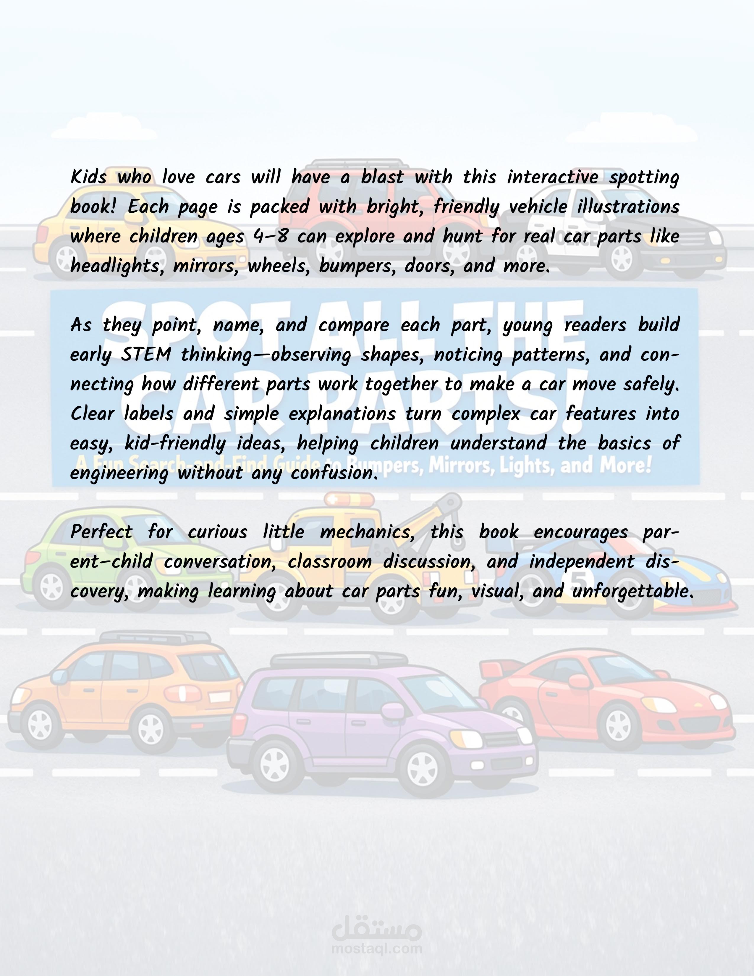 The book is about 45 pages included a picture that shows the car part and explains what it's made for.