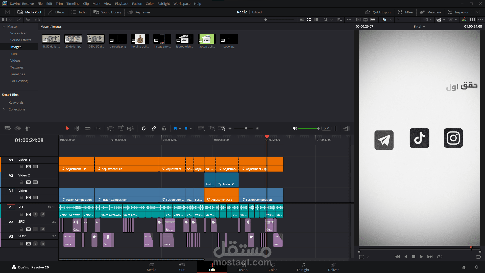 I started with the storyboard, then moved to DaVinci Resolve. I used the Edit page to organize the clips, Fusion for motion graphics, and Fairlight for sound design.