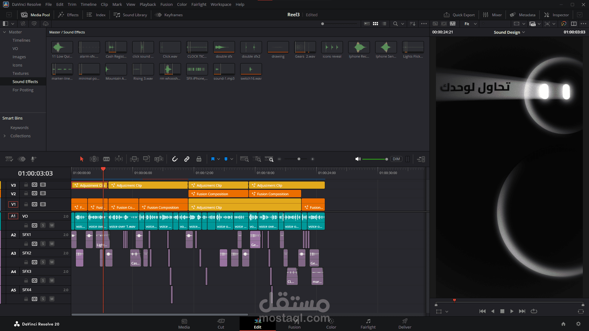 I started with the storyboard, then moved to DaVinci Resolve. I used the Edit page to organize the clips, Fusion for motion graphics, and Fairlight for sound design.