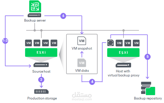 إعداد نظام نسخ احتياطي باستخدام Veeam Backup & Replication لحماية الخوادم والأنظمة الافتراضية وضمان الاستعادة السريعة.