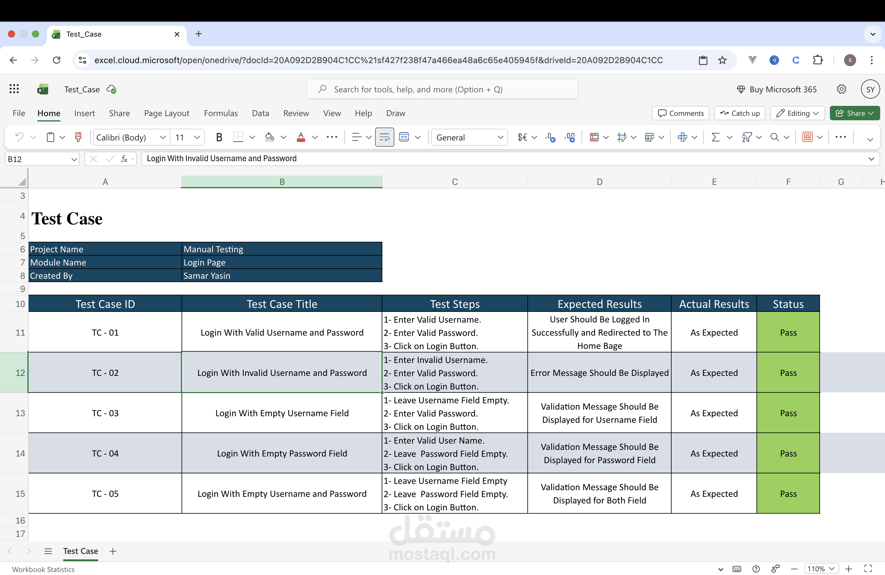 المشروع ده بيوضح عملية الـ Manual Testing لصفحة تسجيل دخول (Login Page) من خلال إعداد Test Cases تغطي السيناريوهات الأساسية وحالات الخطأ، عشان نتأكد من عمل الصفحة بشكل صحيح ونحسن تجربة المستخدم.