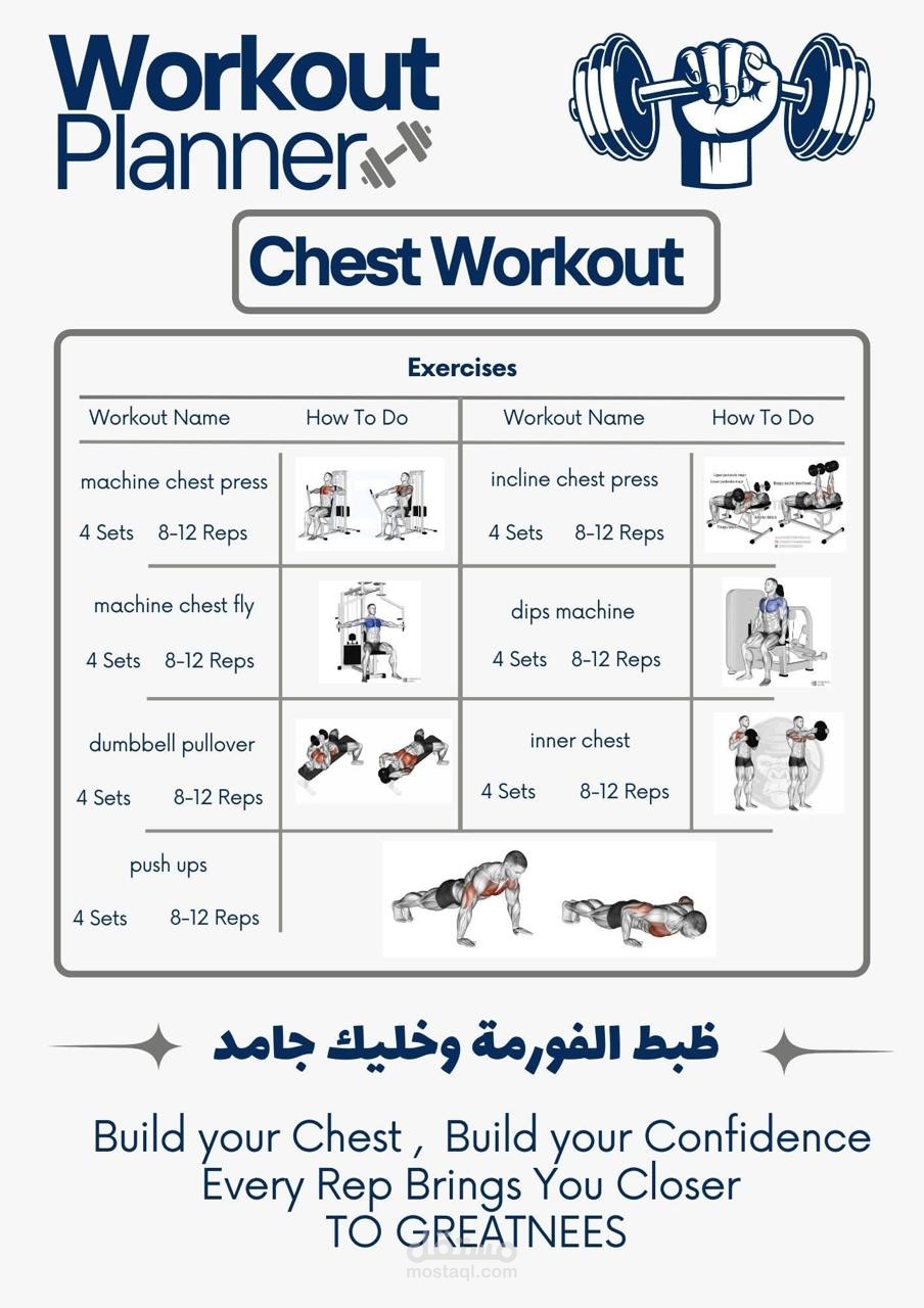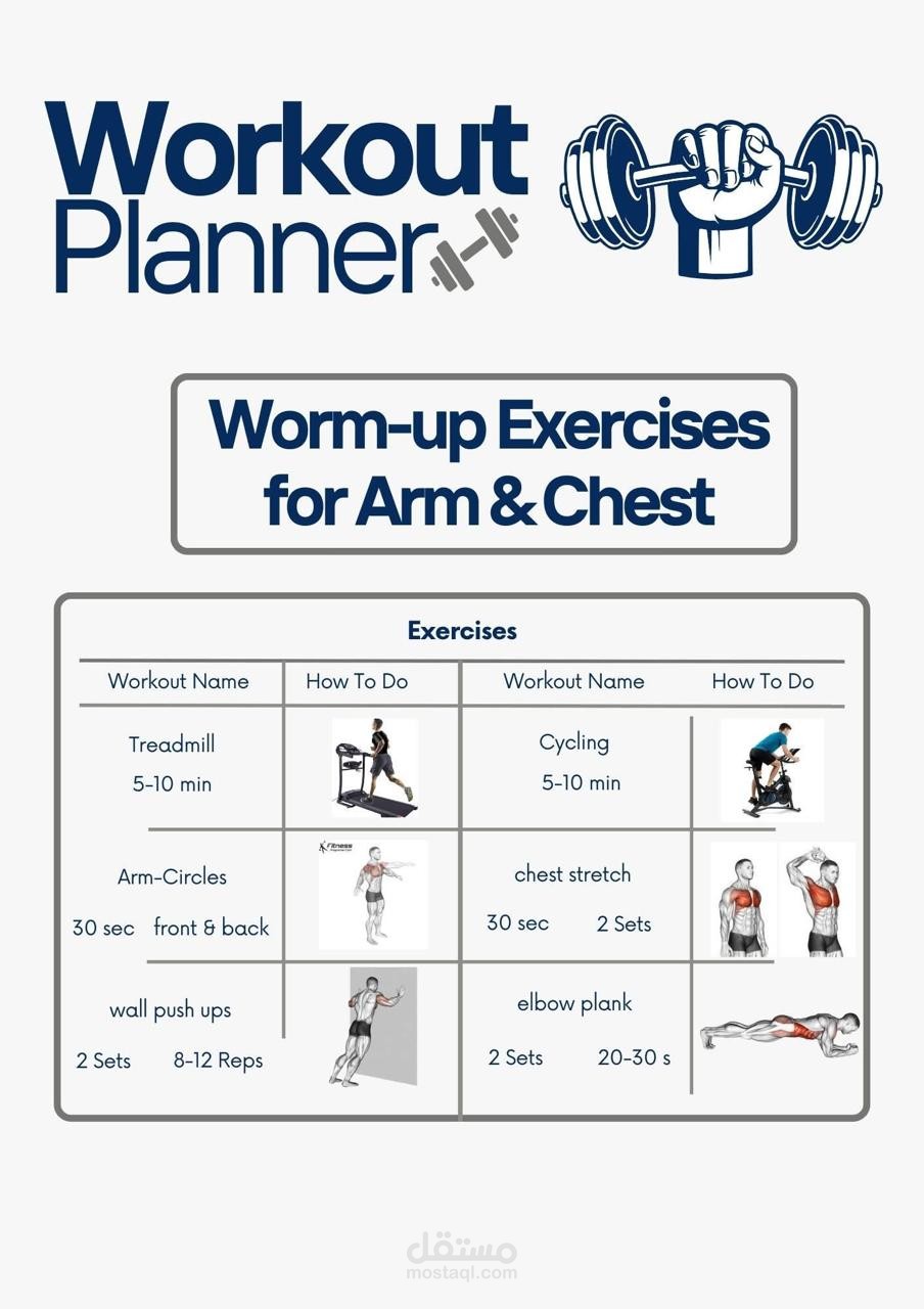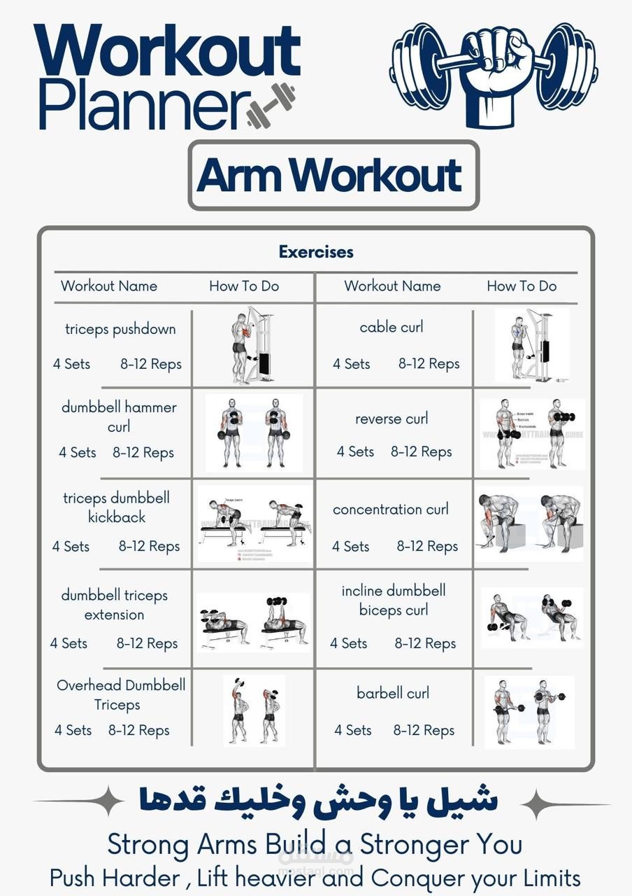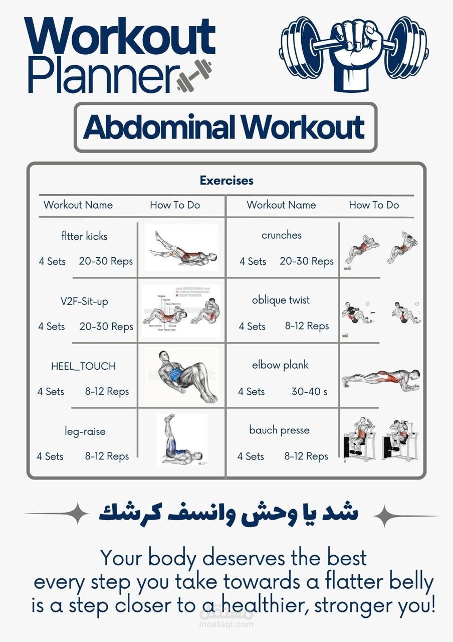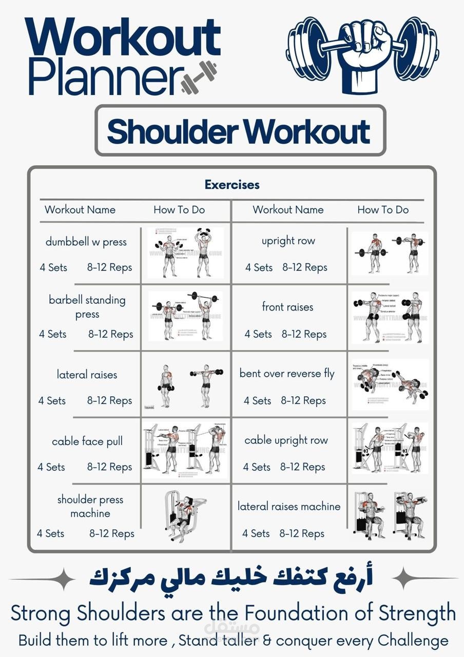 قمت باختيار التمارين بنفسي وتقسيمها بطريقة عملية، مع تصميمها على صور توضيحية تساعد على الفهم السريع والتنفيذ الصحي