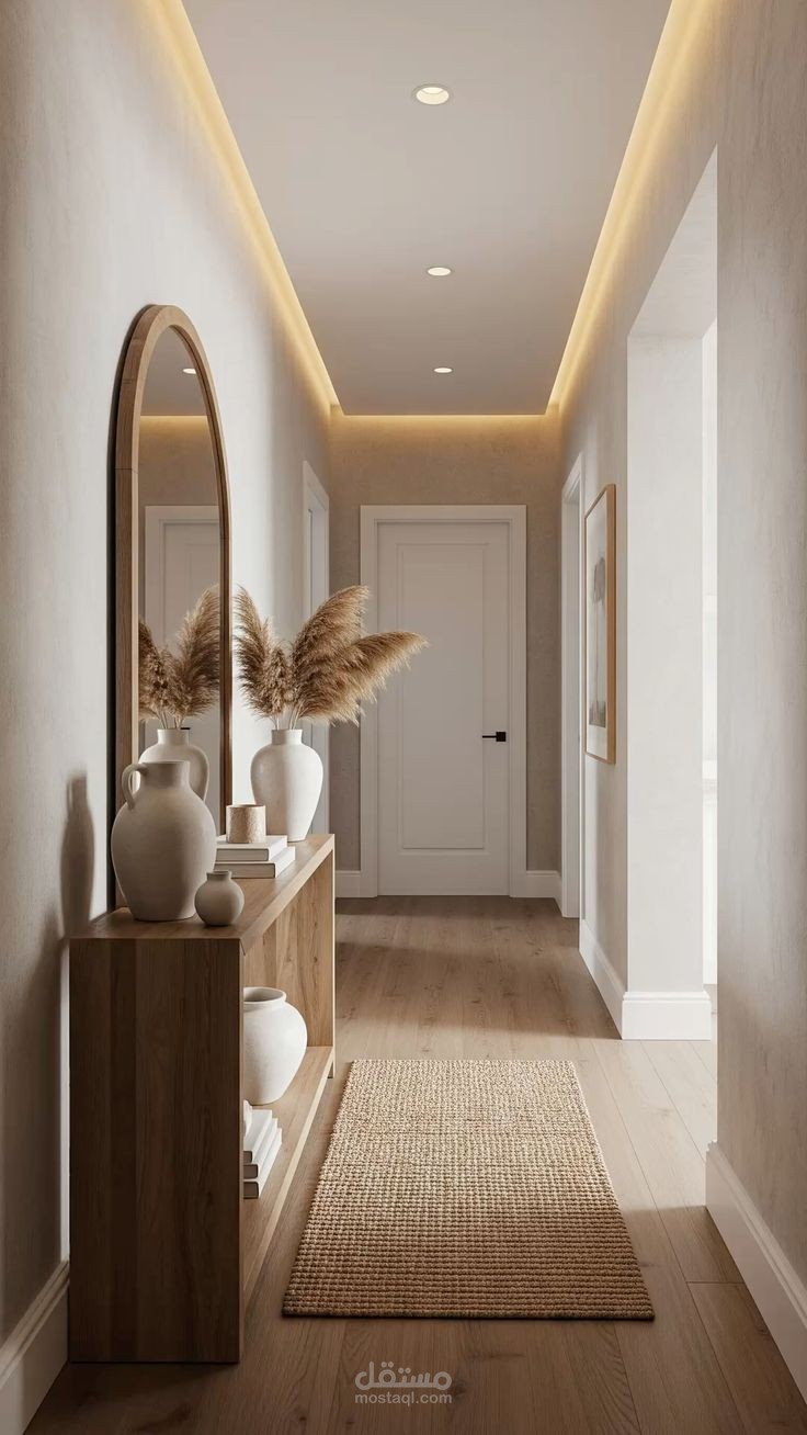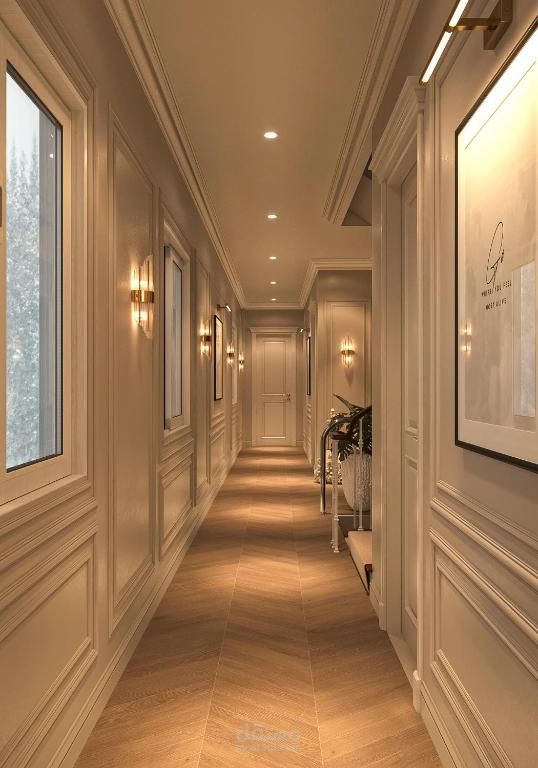 A corridor design focused on smooth circulation, clean lines, and visual harmony.