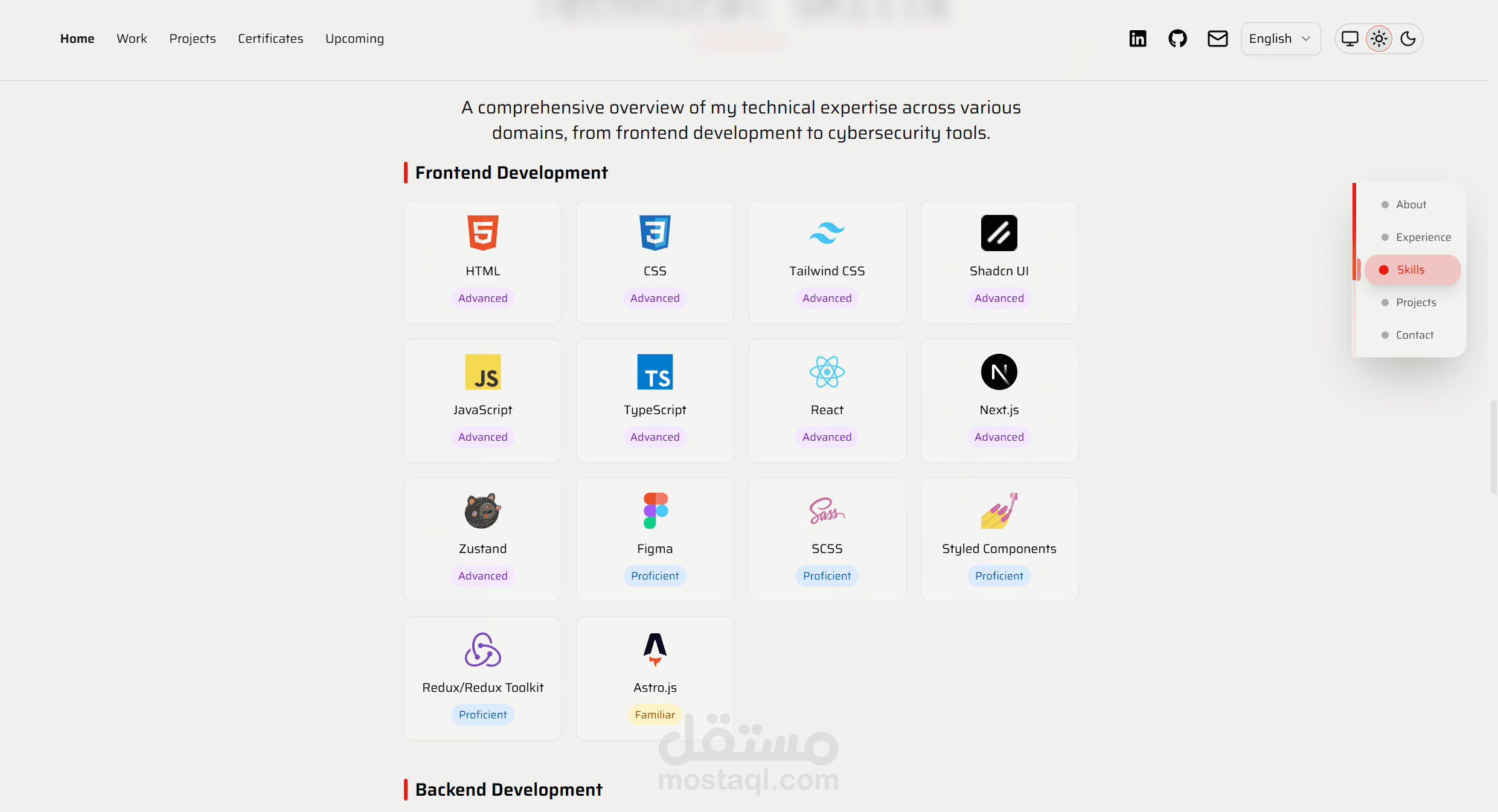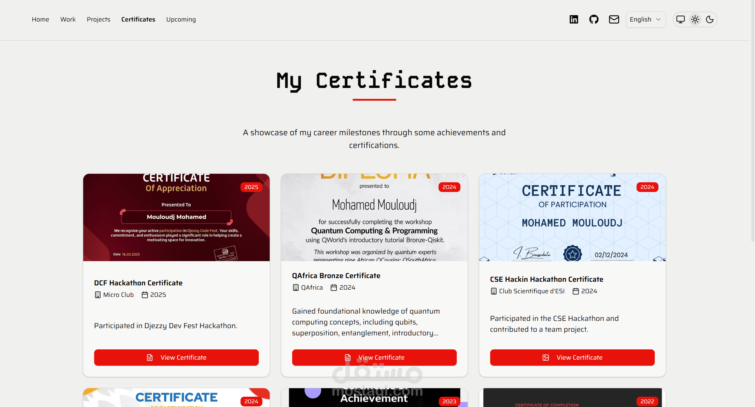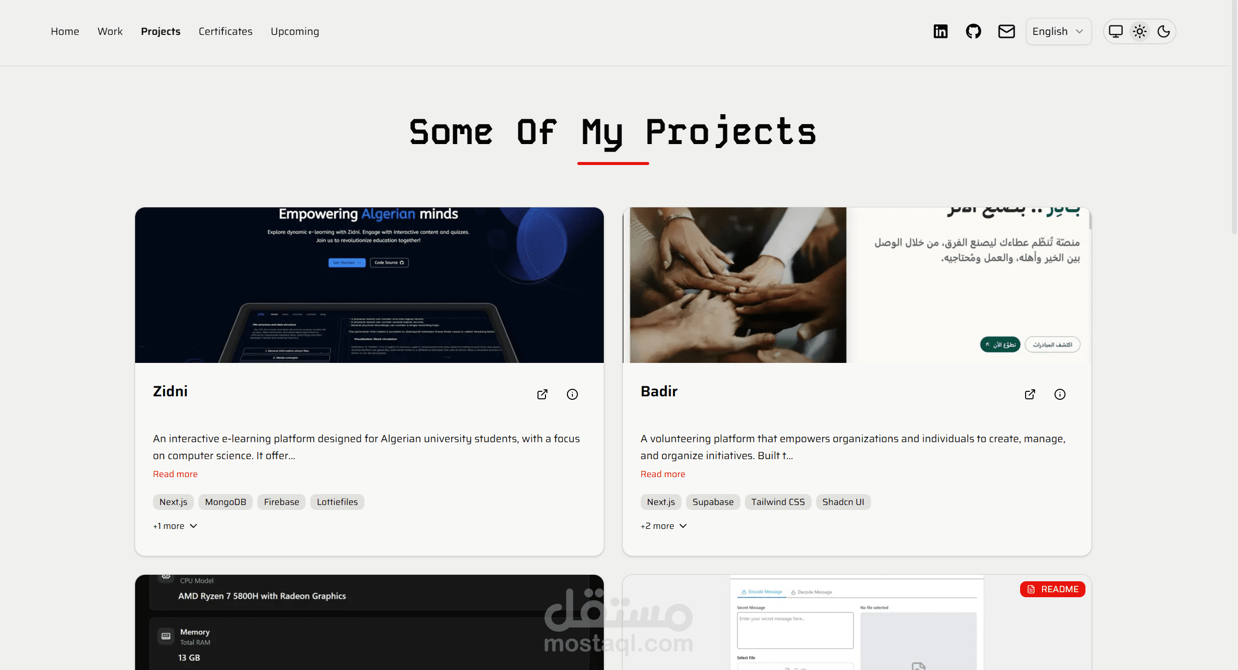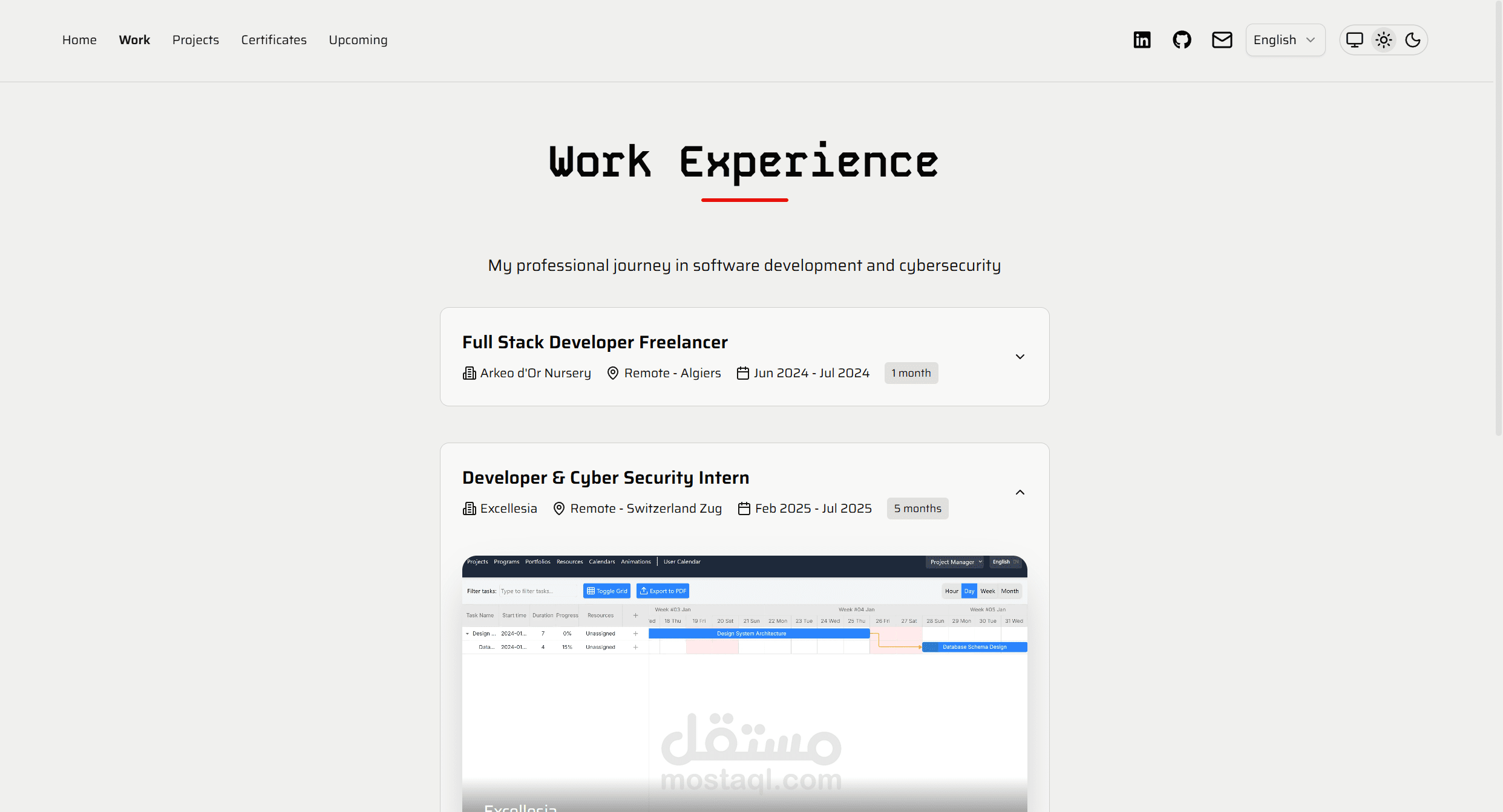 ملفي الشخصي (Portfolio) حيث أعرض خبرتي العملية، ومشاريعي الجانبية، ومهاراتي، وشهاداتي.