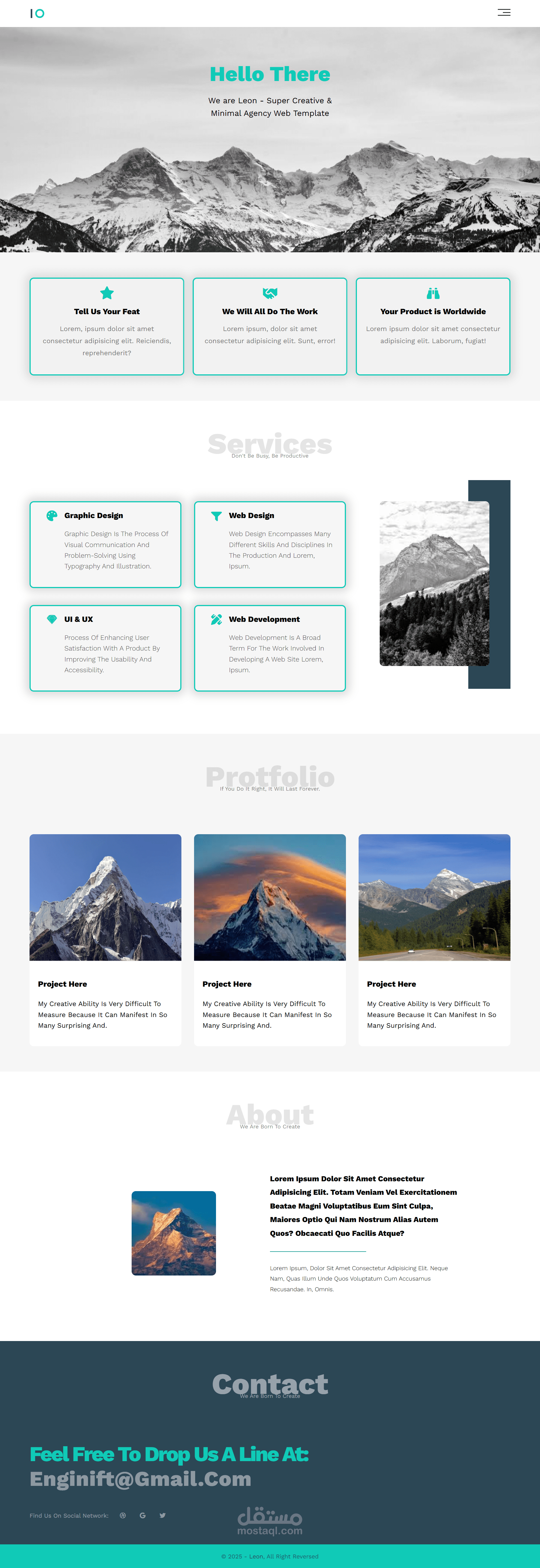 قمت بتطوير واجهة "Leon" (صفحة هبوط لوكالة إبداعية) بتصميم عصري وبسيط. ركزت في هذا المشروع على التنفيذ الدقيق (Pixel-Perfect) مع كتابة كود نظيف يضمن أفضل أداء وتجربة مستخدم.