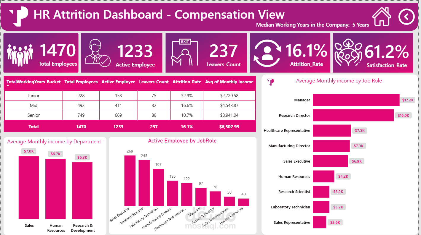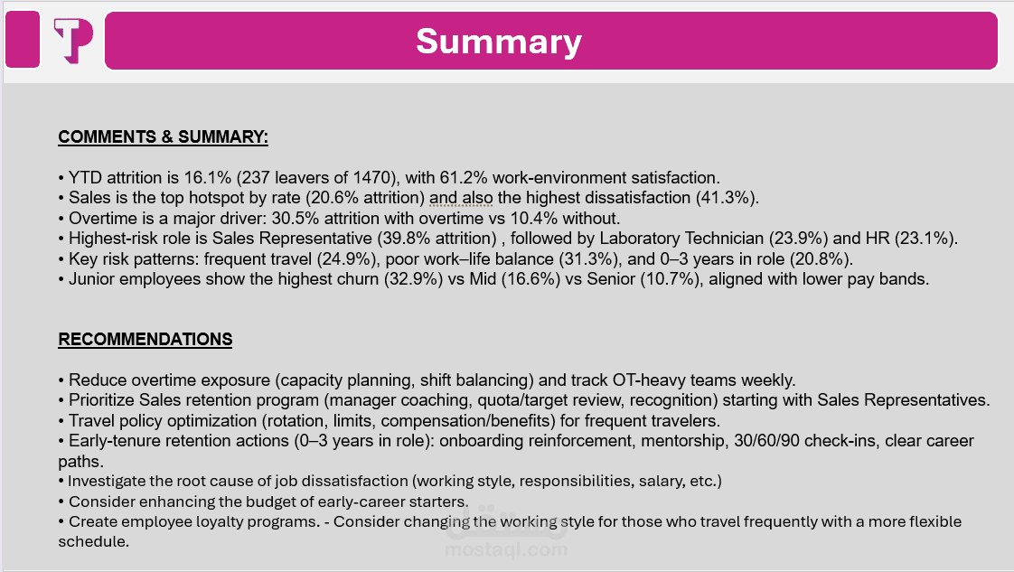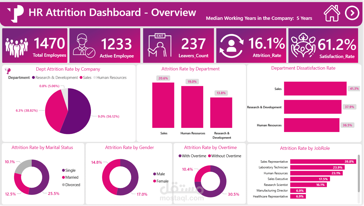 This dashboard provides a comprehensive overview of employee attrition across all departments and job roles, highlighting the key drivers to support informed business decision-making.