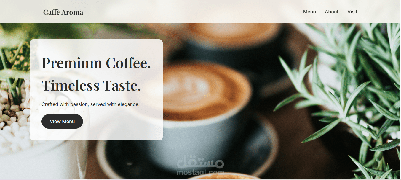 A modern and responsive coffee and food website built with HTML, CSS, and JavaScript. Showcasing coffee drinks, food items, and a cozy café vibe with a clean and elegant design.