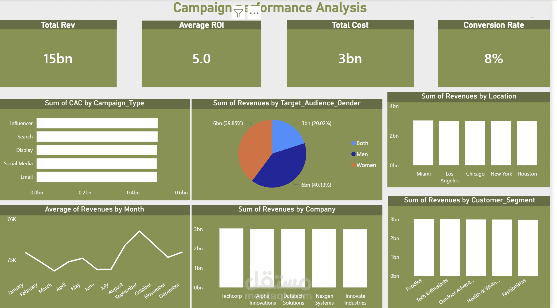 تحليل بيانات وهميه لماركتينج كامبين باستخدام excel, power bi تنظيف ومعالجه البيانات وحساب اهم kpis للماركتينج للمساعده علي اتخاذ قرار صحيح وتطوير الشركه