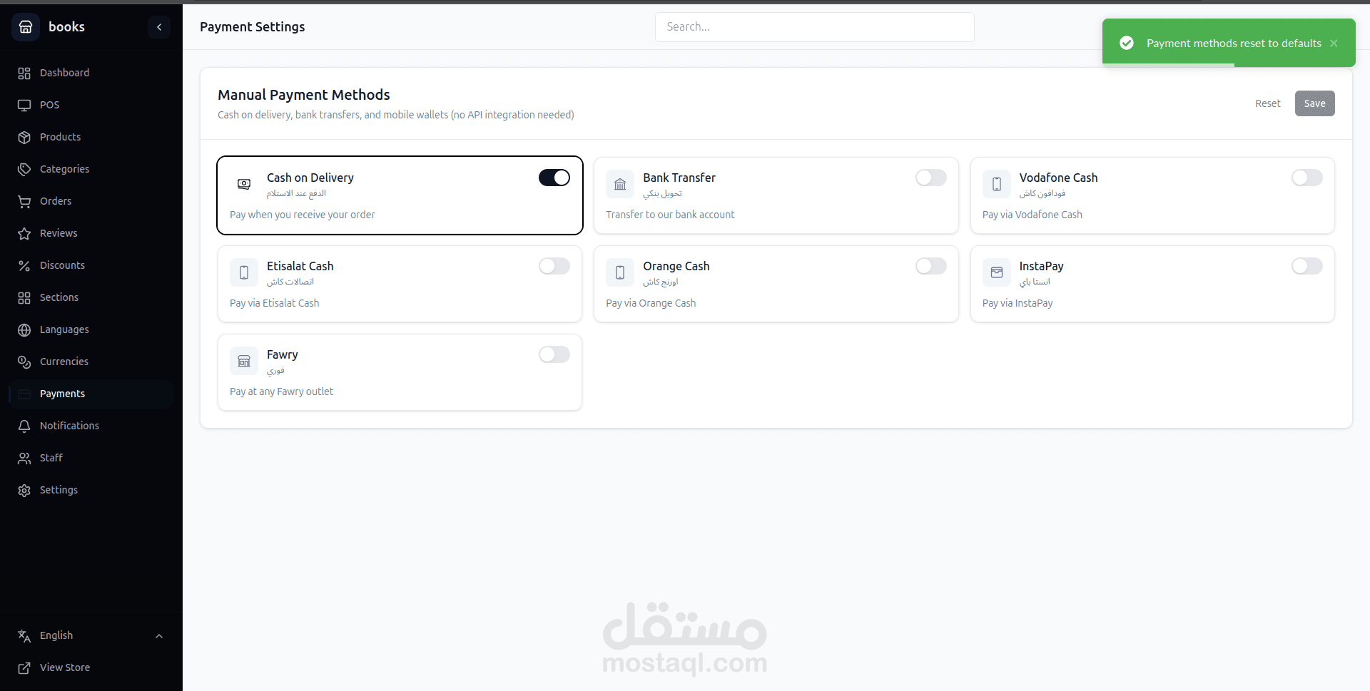 Admin dashboard for managing products and orders