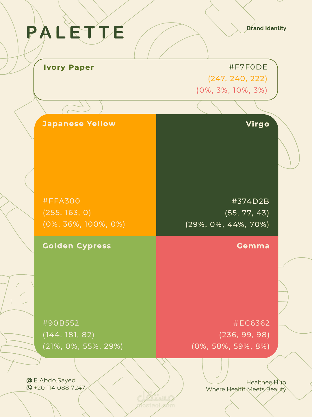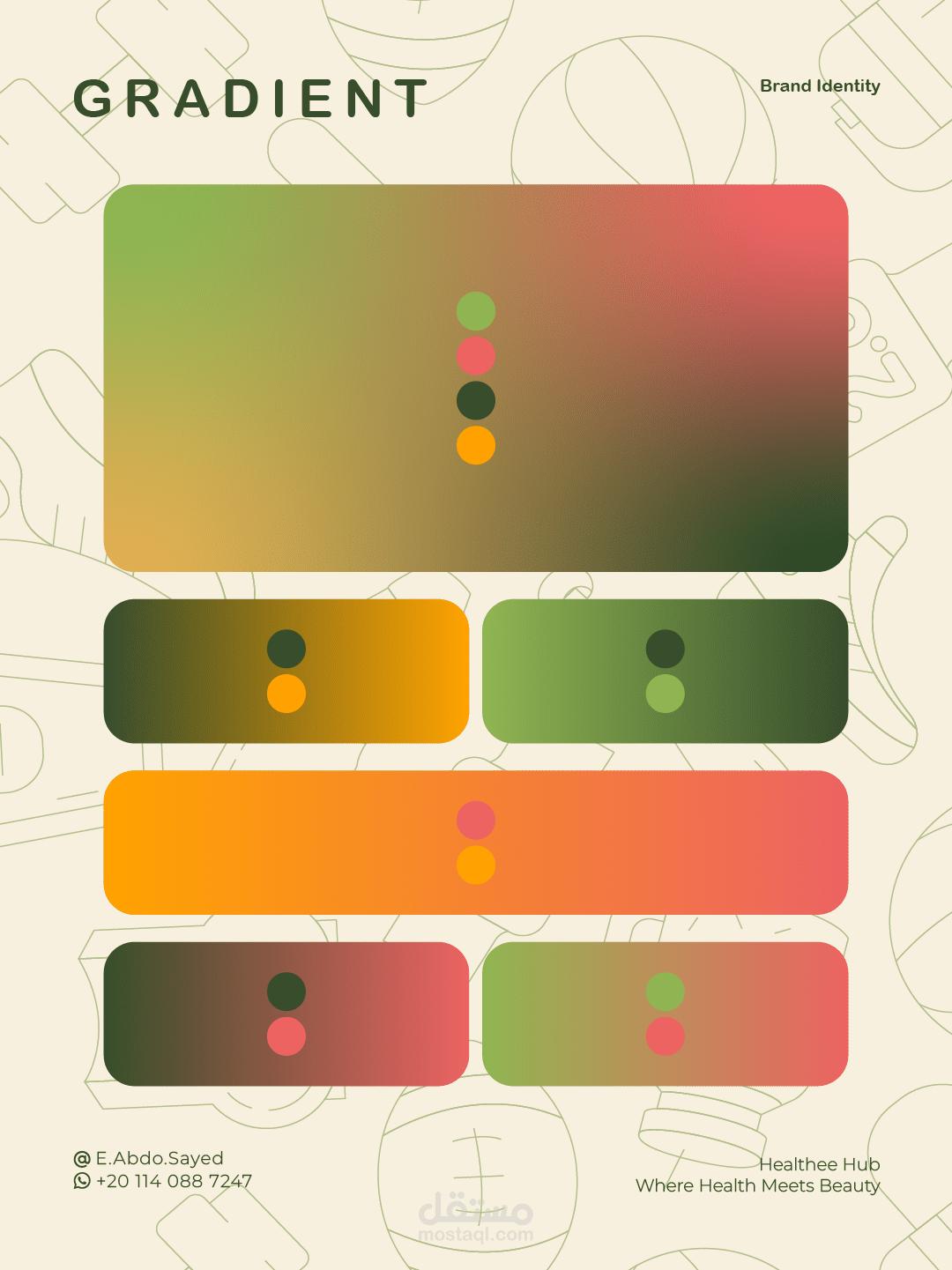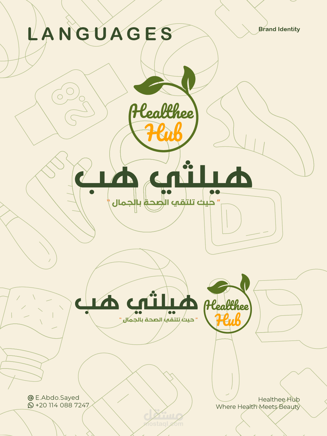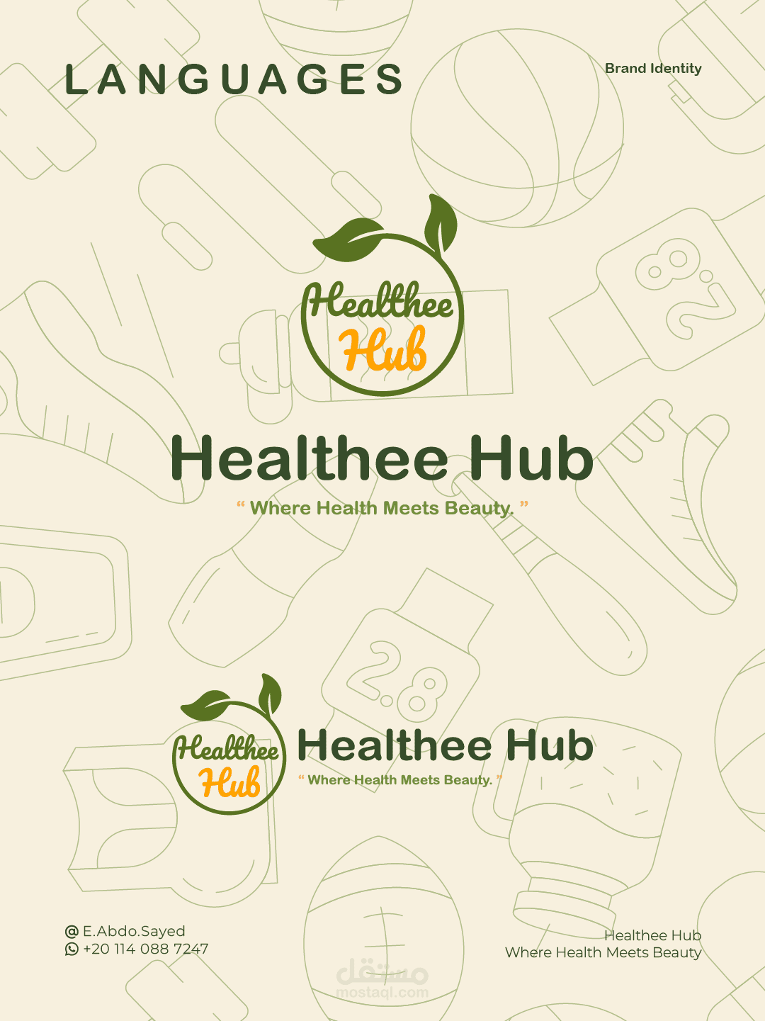 Healthee Hub هو براند متخصص في التغذية العلاجية، يهدف إلى تعزيز الصحة والرفاهية من خلال حلول غذائية علمية وعملية. الهوية البصرية صُممت لتعكس قيم العلامة: الثقة، العناية، والاحترافية، مع لمسة عصرية تجعلها قريبة من الجمهور.