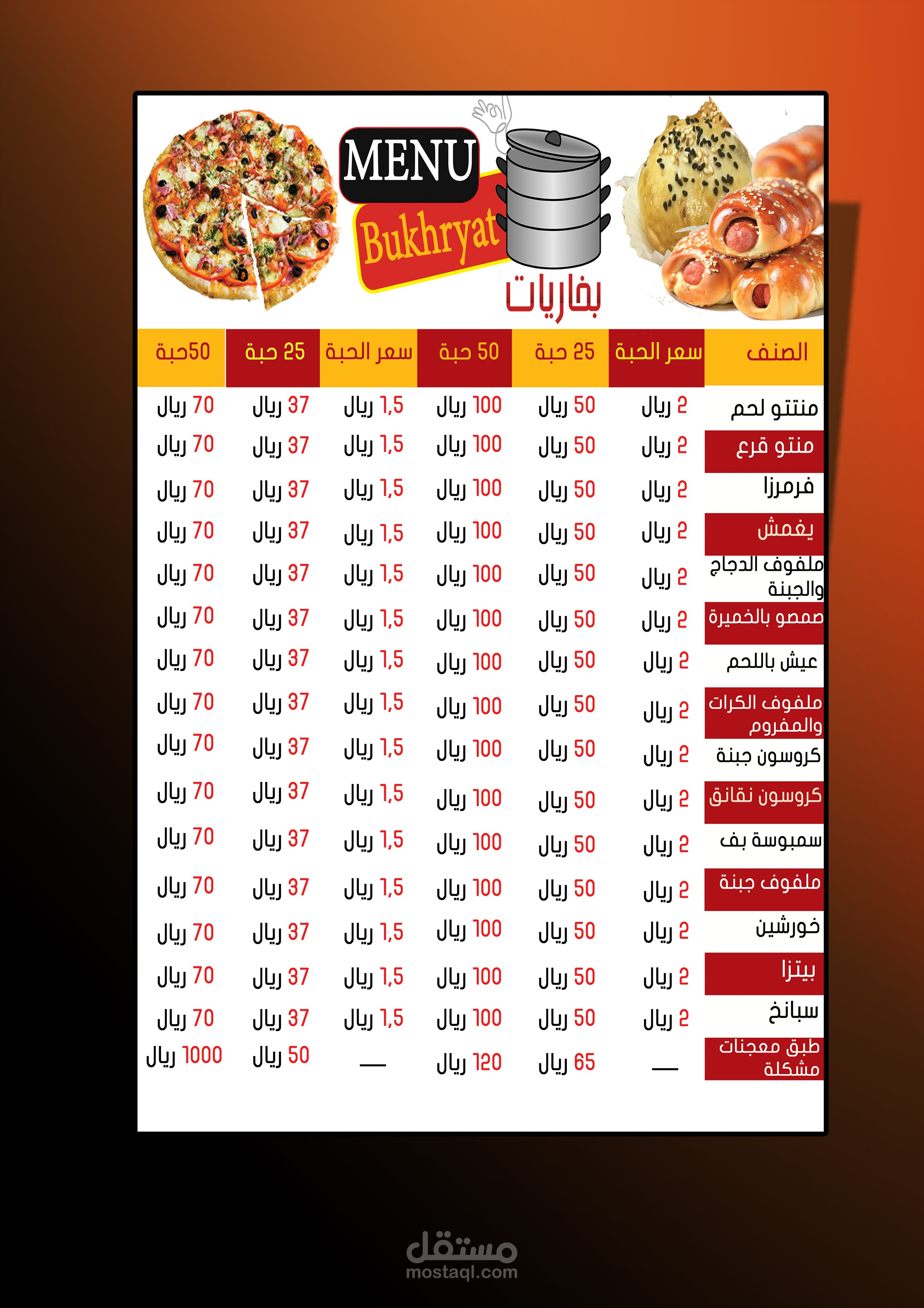 مينيو لصالح بخاريات Menu Food Bukaryat
