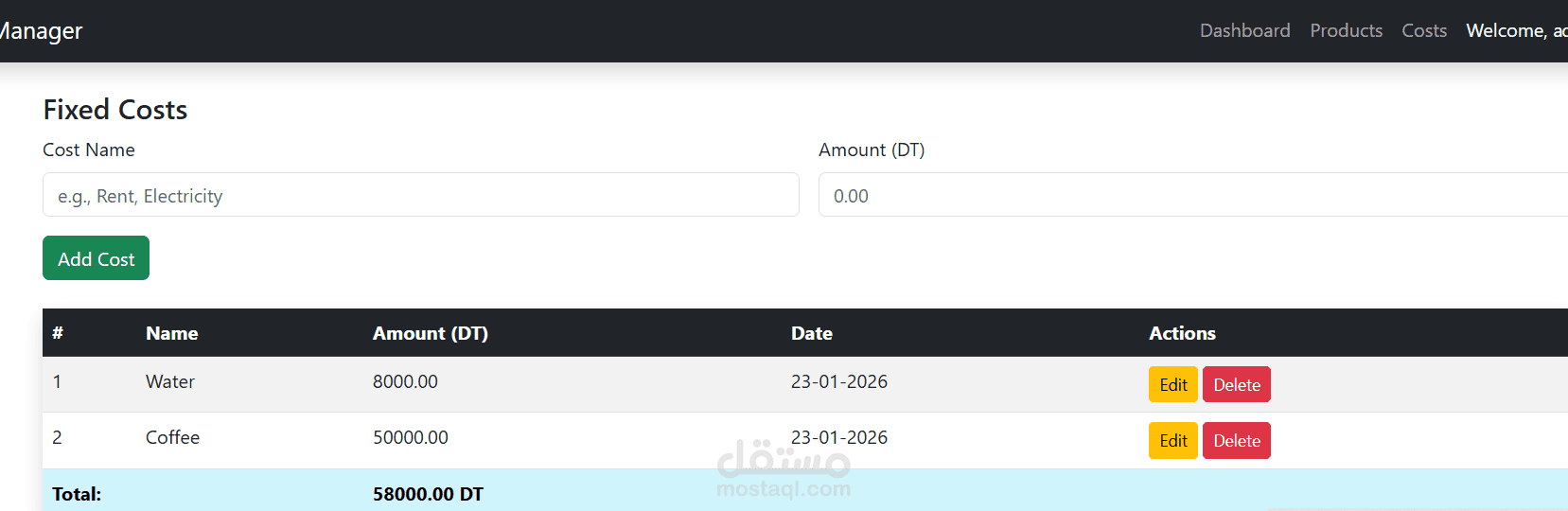 It's a web app that give the admin the opportunity to estimate his profit every month after entering the costs and the products sold
