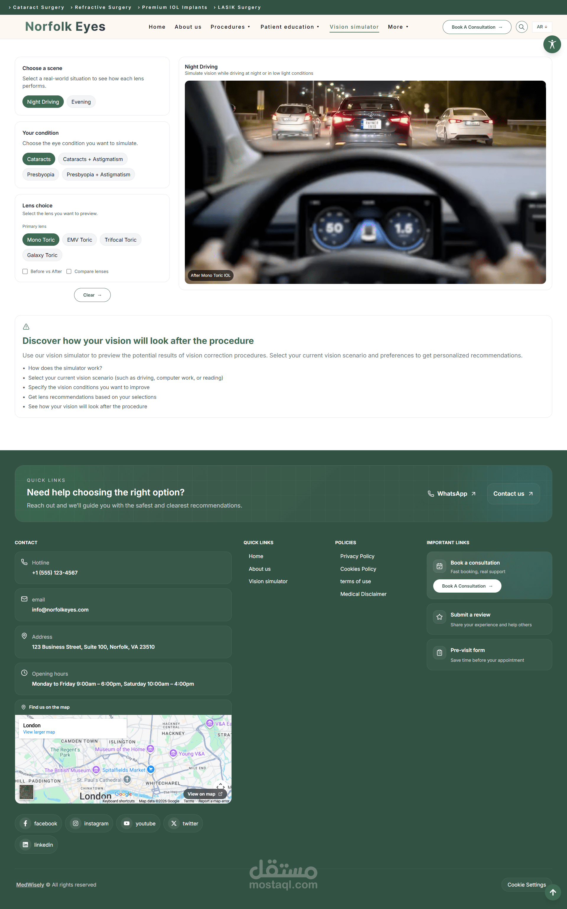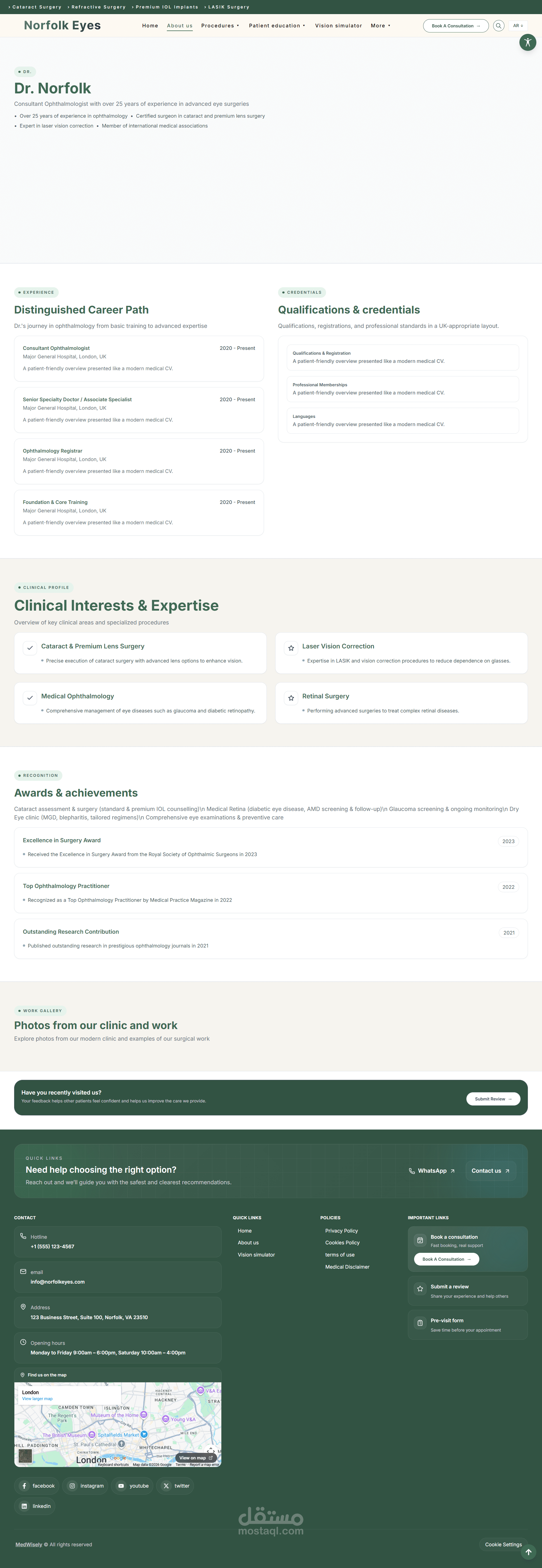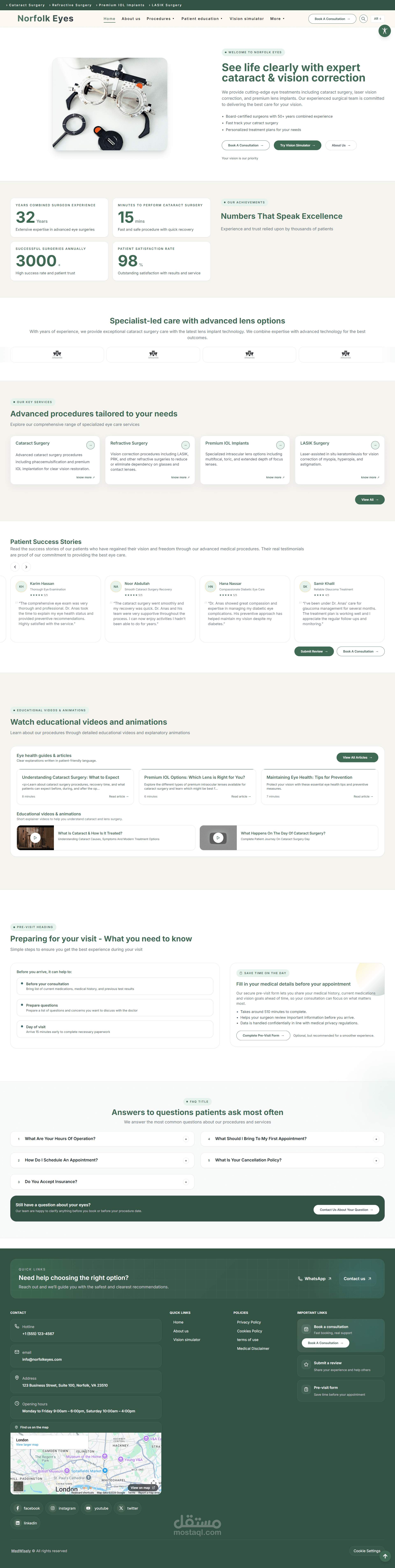 تطوير موقع طبي متكامل لعيادة عيون متخصصة في عمليات المياه البيضاء وتصحيح الإبصار، مع التركيز على الأداء، سهولة الاستخدام، وإمكانية الوصول.