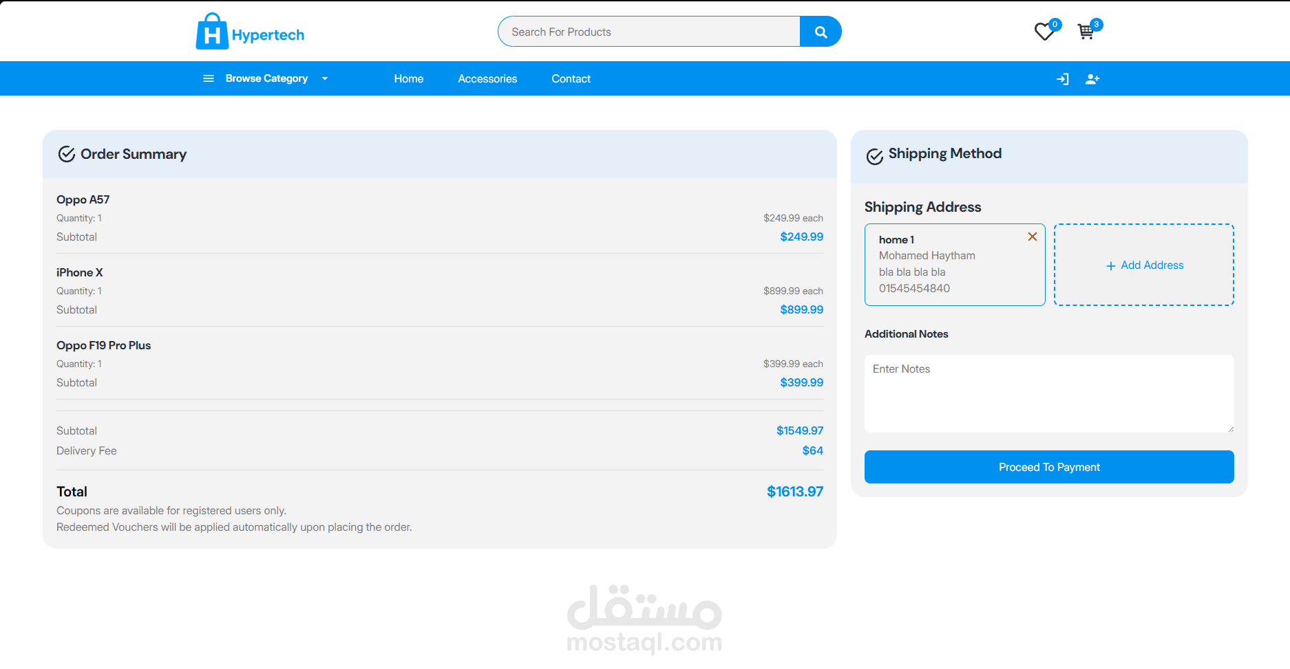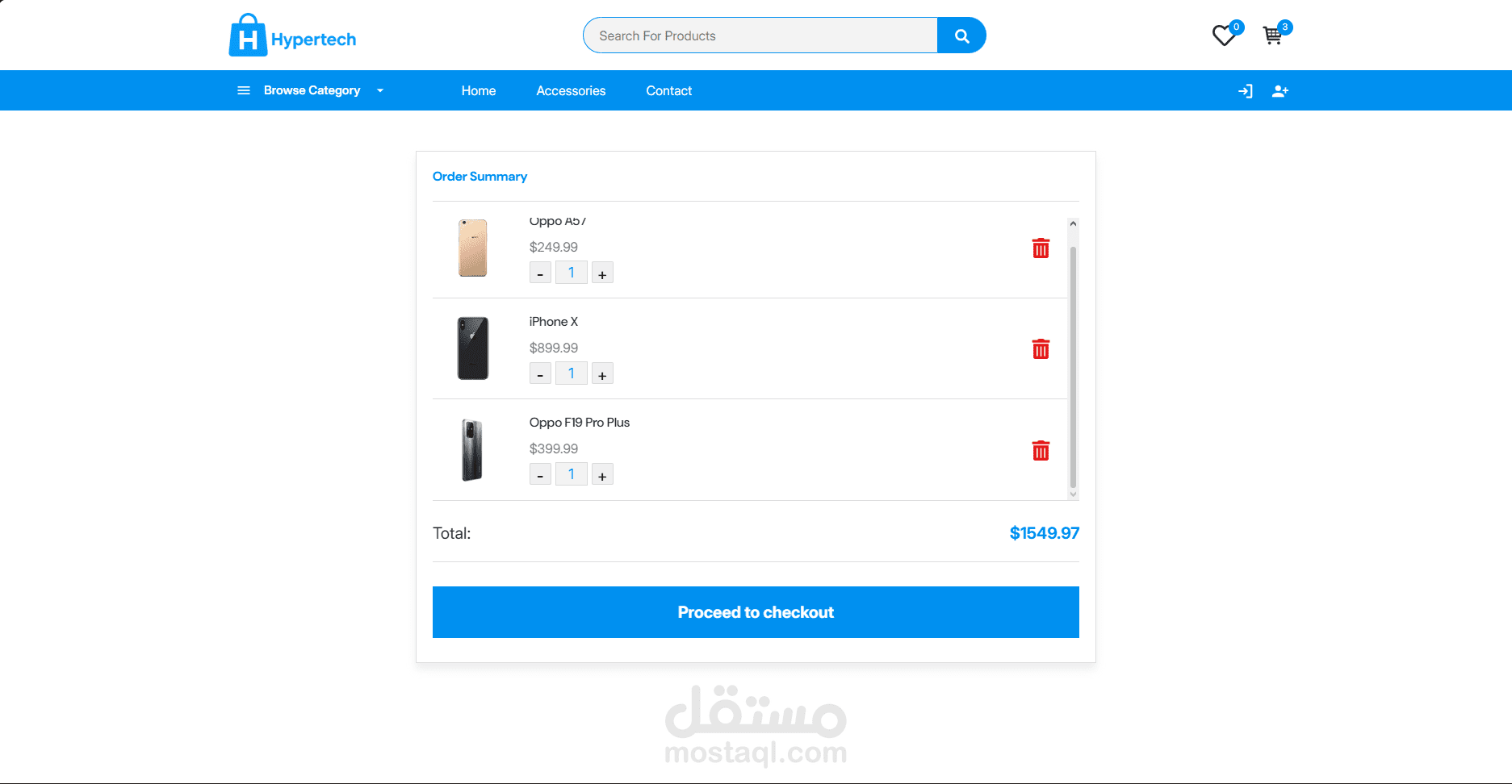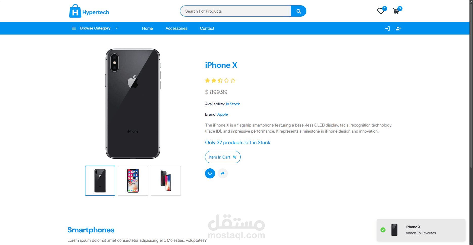 تم تطوير منصة تجارة إلكترونية تفاعلية ومتجاوبة بالكامل باستخدام React.js، توفّر تجربة استخدام سلسة على جميع الأجهزة. تم تنفيذ عرض ديناميكي للمنتجات، وبناء مكوّنات قابلة لإعادة الاستخدام، مع استخدام React Router للتنقّل بين الصفحات من جهة العميل. تم دمج خصائص متقدمة تشمل إدارة سلة التسوق، تصفية المنتجات، البحث، والتحقق من صحة النماذج باستخدام Joi-browser. كما تم تحسين تفاعل المستخدم من خلال الإشعارات باستخدام Toastify، الأزرار التفاعلية، والانتقالات والحركات السلسة. وتم تطبيق مبادئ تصميم واجهات حديثة باستخدام Bootstrap لتقديم تطبيق عالي الأداء وجذاب بصريًا.