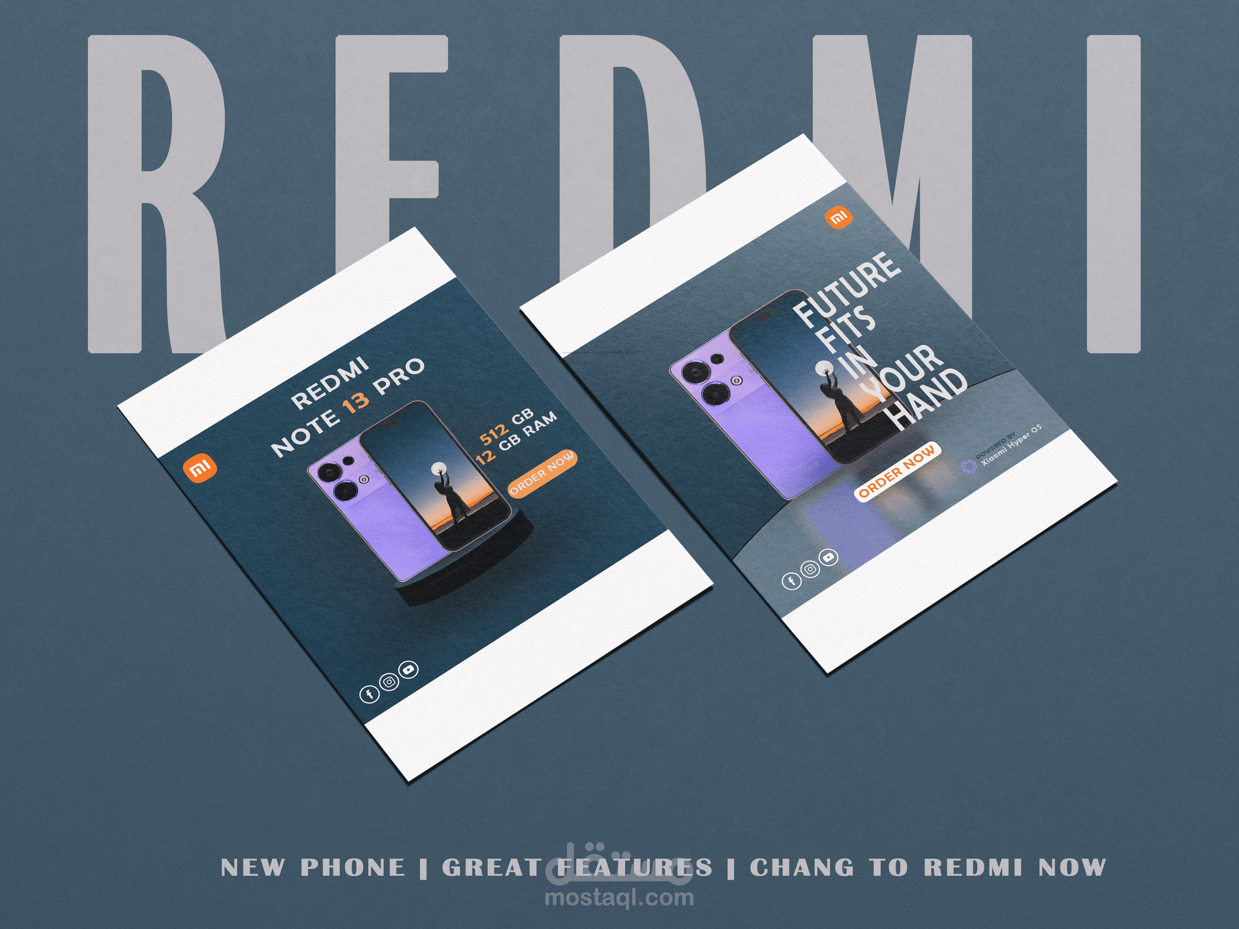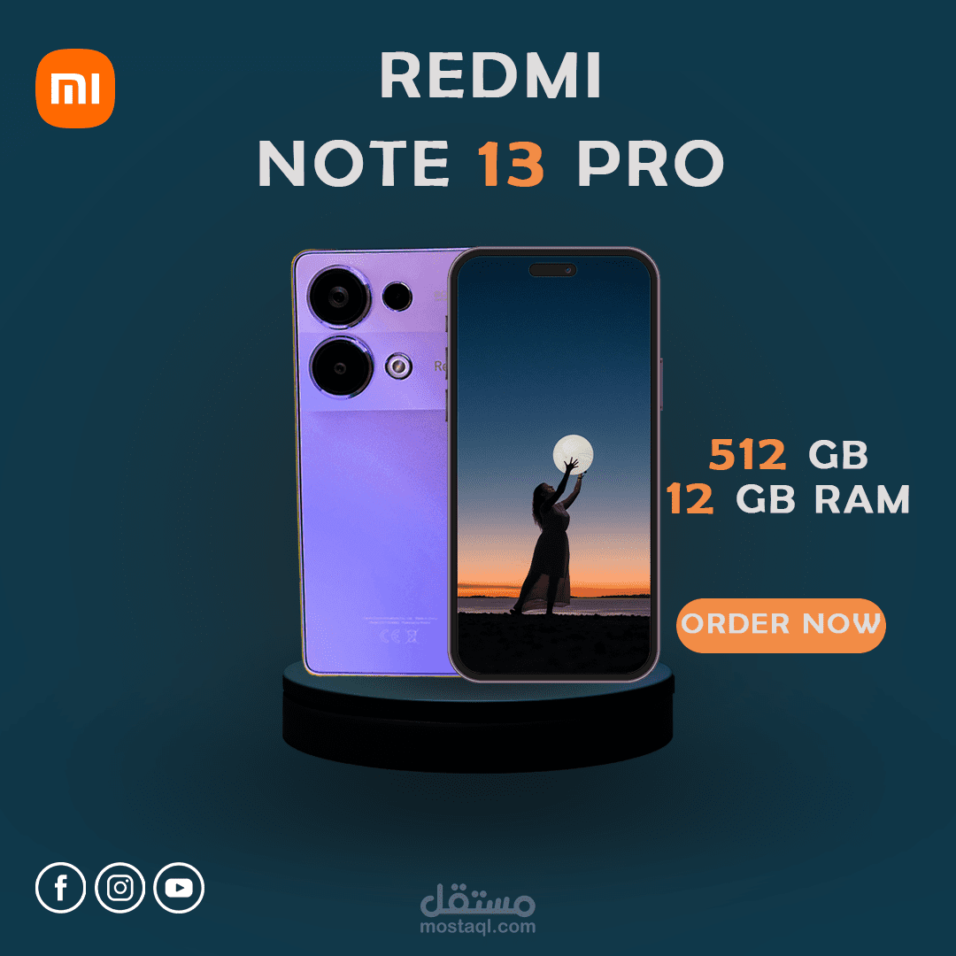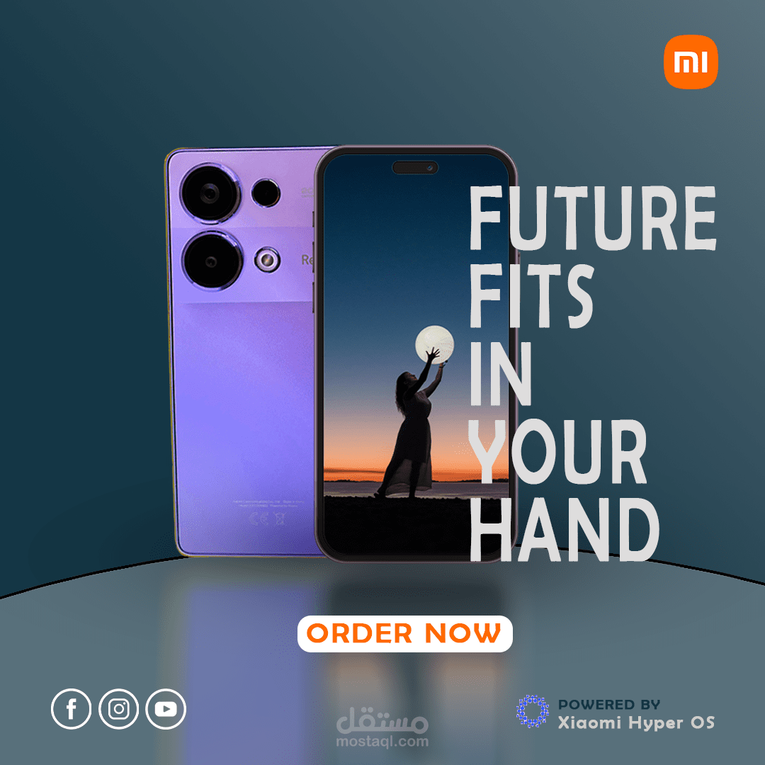 بوست سوشيال ميديا، يوضح إعلان لهاتف جديد من شركة هواتف عالمية، وتم مراعاة عناصر الهوية البصرية حتى تكون ملائمة ومناسبة للفئة المستهدفة.