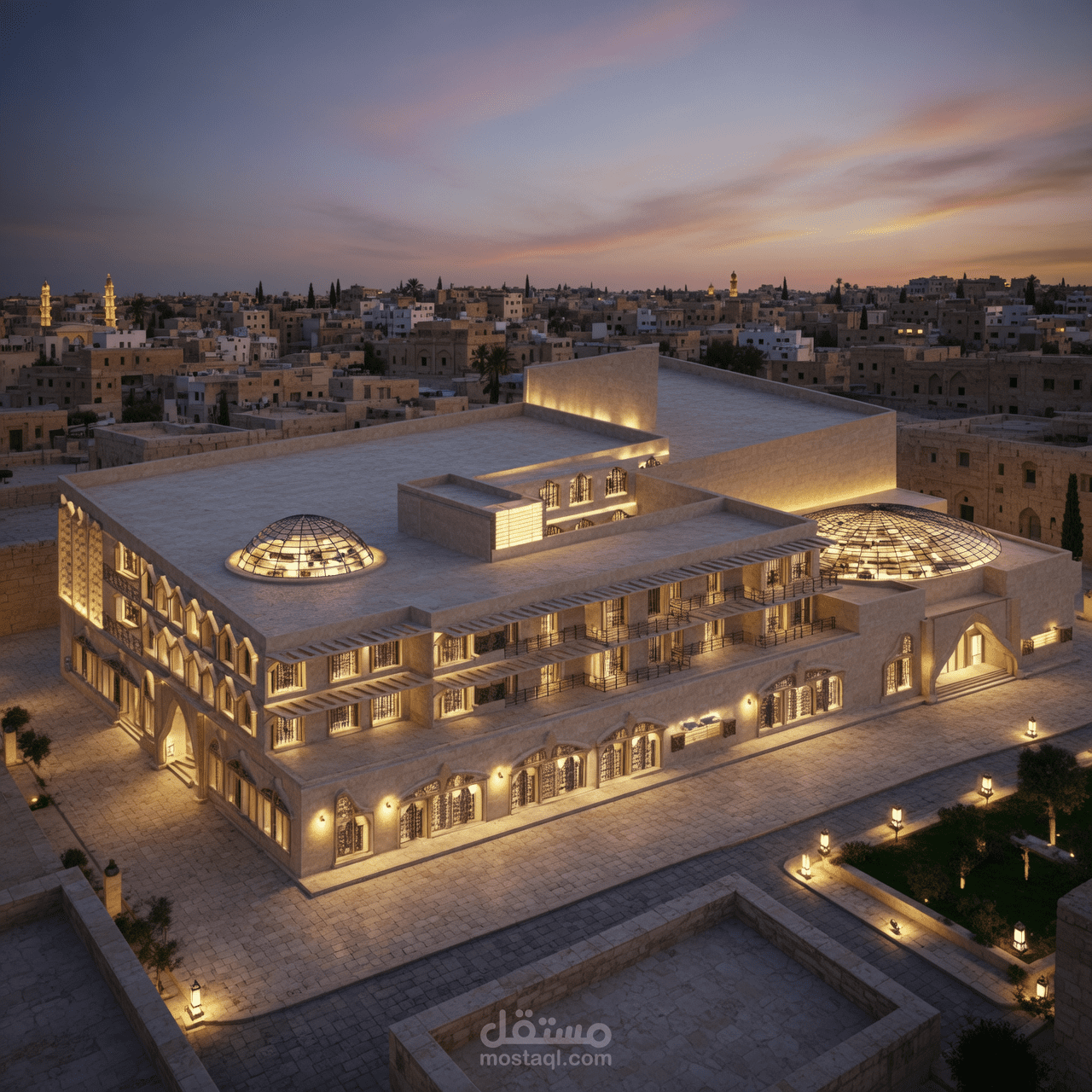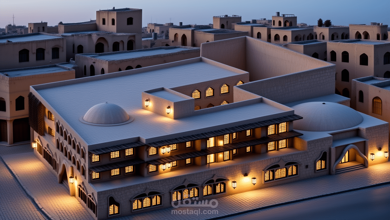 الحمد لله قمت بتصميم نزل فندقي يقع في سوريا في مدينة حمص استخدمت في هذا المشروع الفناء الداخلي والفراغات المعمارية المعرضة للانارة والتهوية الطبيعية والمشروع المصمم قد تم دمجه مع بيئته في حمص القديمة بطريقة عصرية ومناسبة تم استخدام الكاسرات الشمسية الافقية لعدم ادخال اشعة الشمس في ذروة قوتها في الجنوب وعدم ازعاج المستخدم للفراغات المعمارية