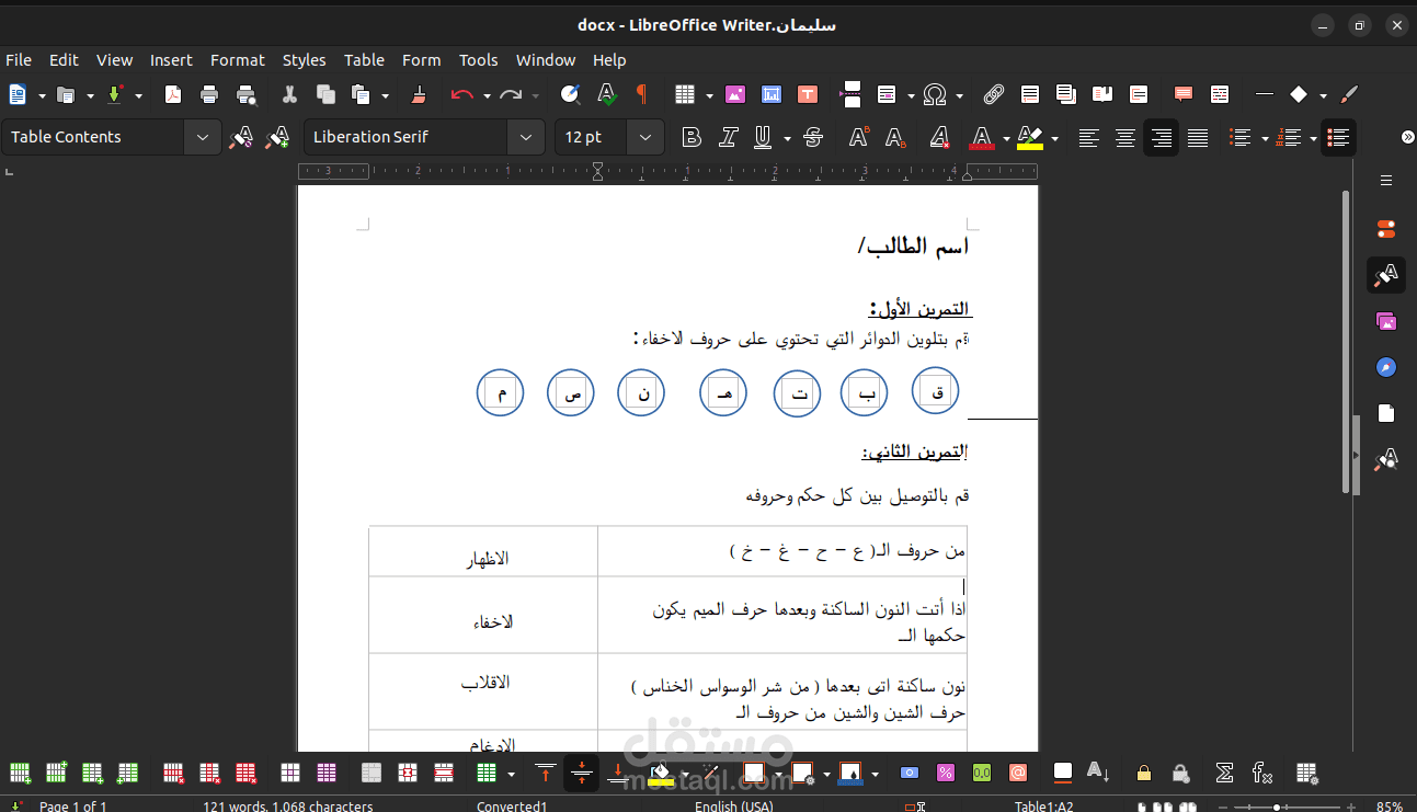 تصميم وكتابة امتحان لاطفال في سن المدرسة على برنامج الكتابة المجاني libra office