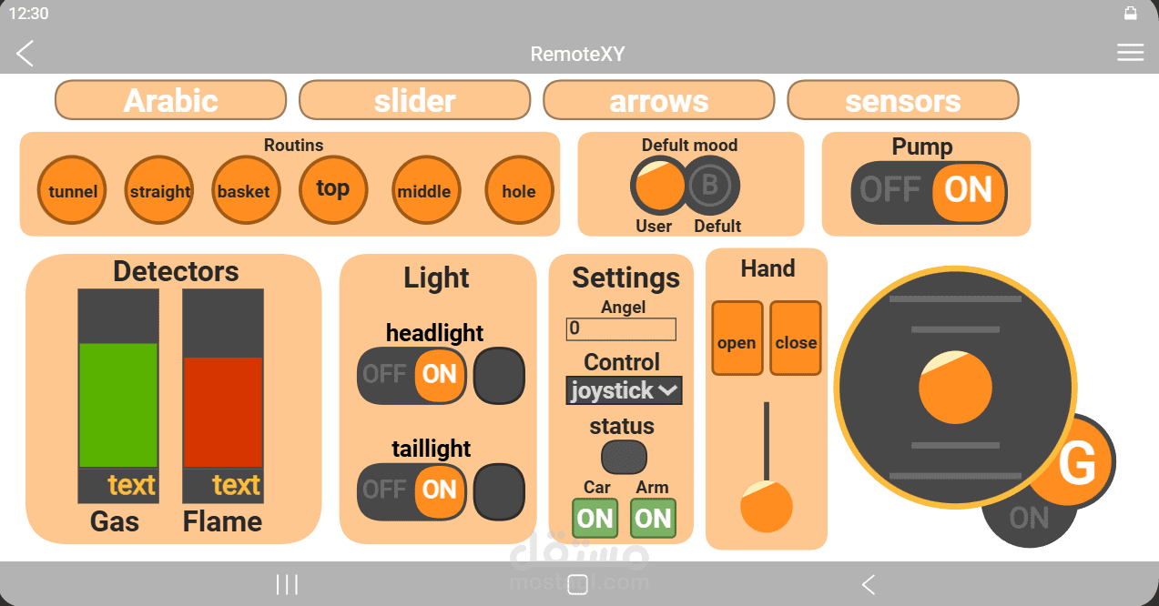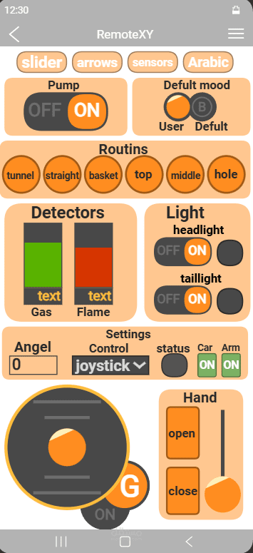 روبوت إطفاء مصمم للكشف عن الحرائق وتسربات الغاز والاستجابة لها. يتضمن ذراعًا روبوتية بست درجات حرية ومجموعة متنوعة من أجهزة الاستشعار، ويمكن التحكم به بالكامل عبر تطبيق جوال باستخدام وحدة التحكم الدقيقة ESP32.