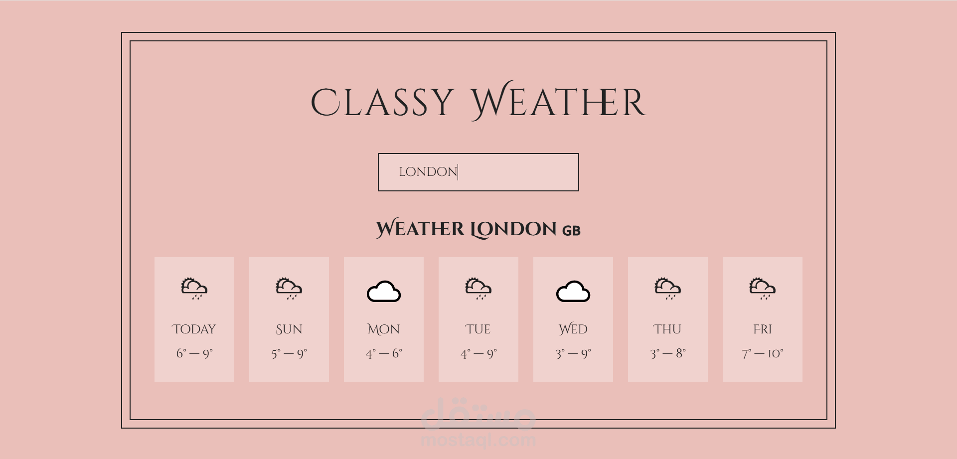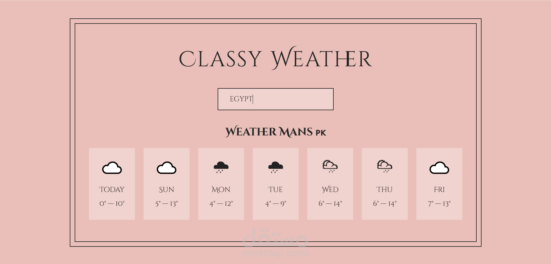 تطبيق طقس تفاعلي مطور باستخدام React، يتيح البحث عن المدن وعرض بيانات الطقس بتصميم متجاوب وتجربة مستخدم سلسة.