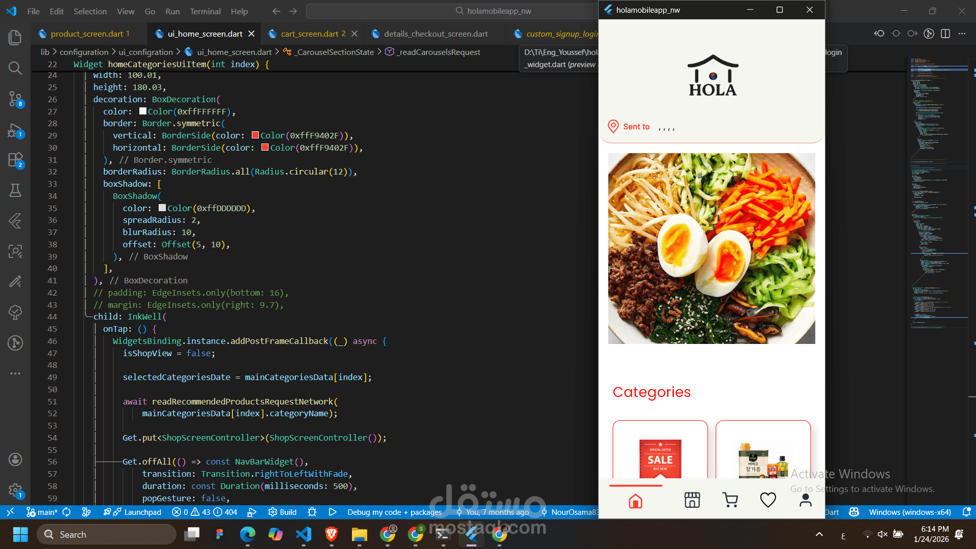 Hola Food هو تطبيق موبايل مخصص لعشاق الأكل المغلف الآسيوي، مثل الإندومي، النودلز، السناك الآسيوي، والمأكولات الجاهزة السريعة. يتيح التطبيق للمستخدمين تصفح المنتجات، طلبها بسرعة، واستلامها في أي وقت بطريقة سهلة ومريحة.