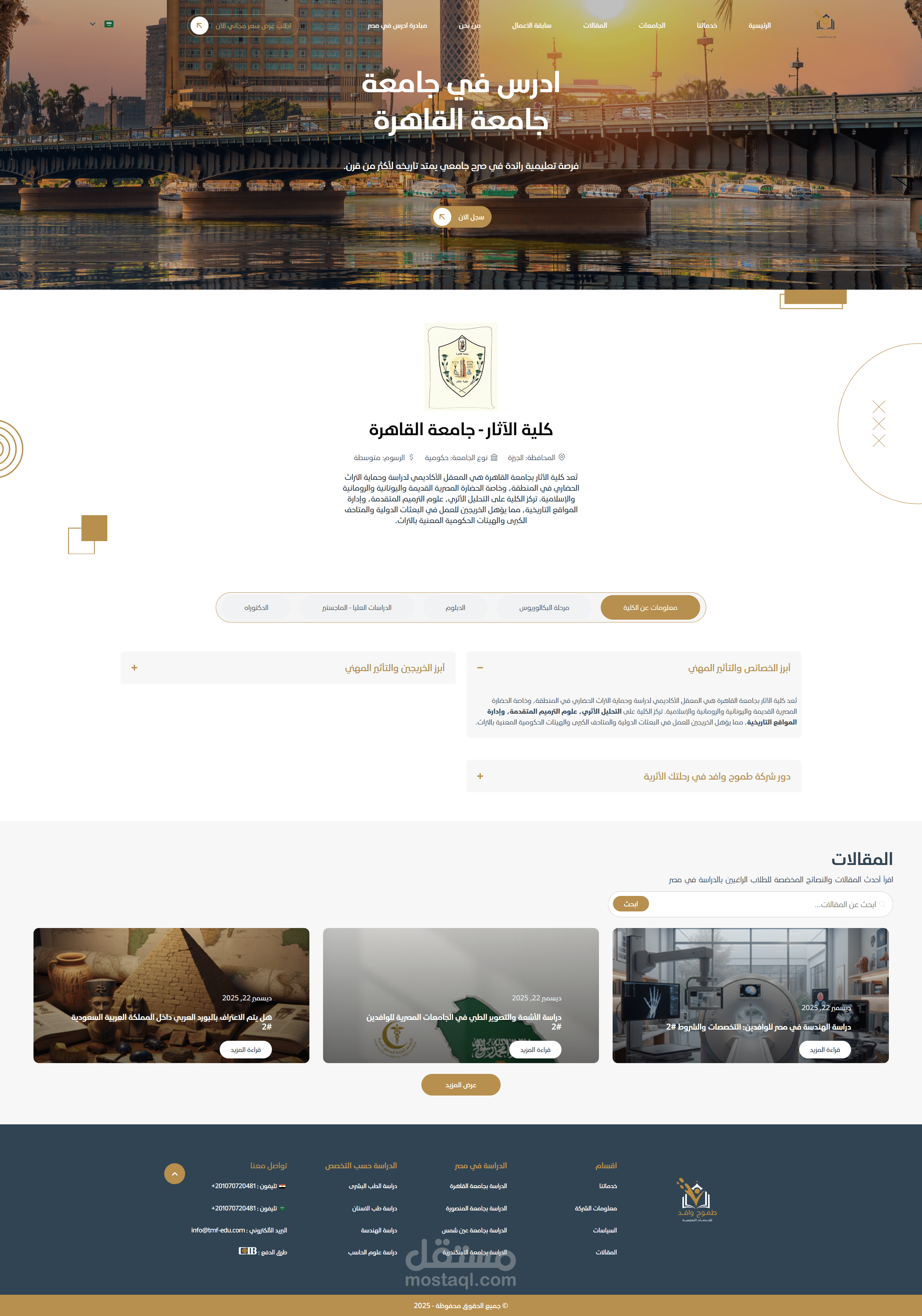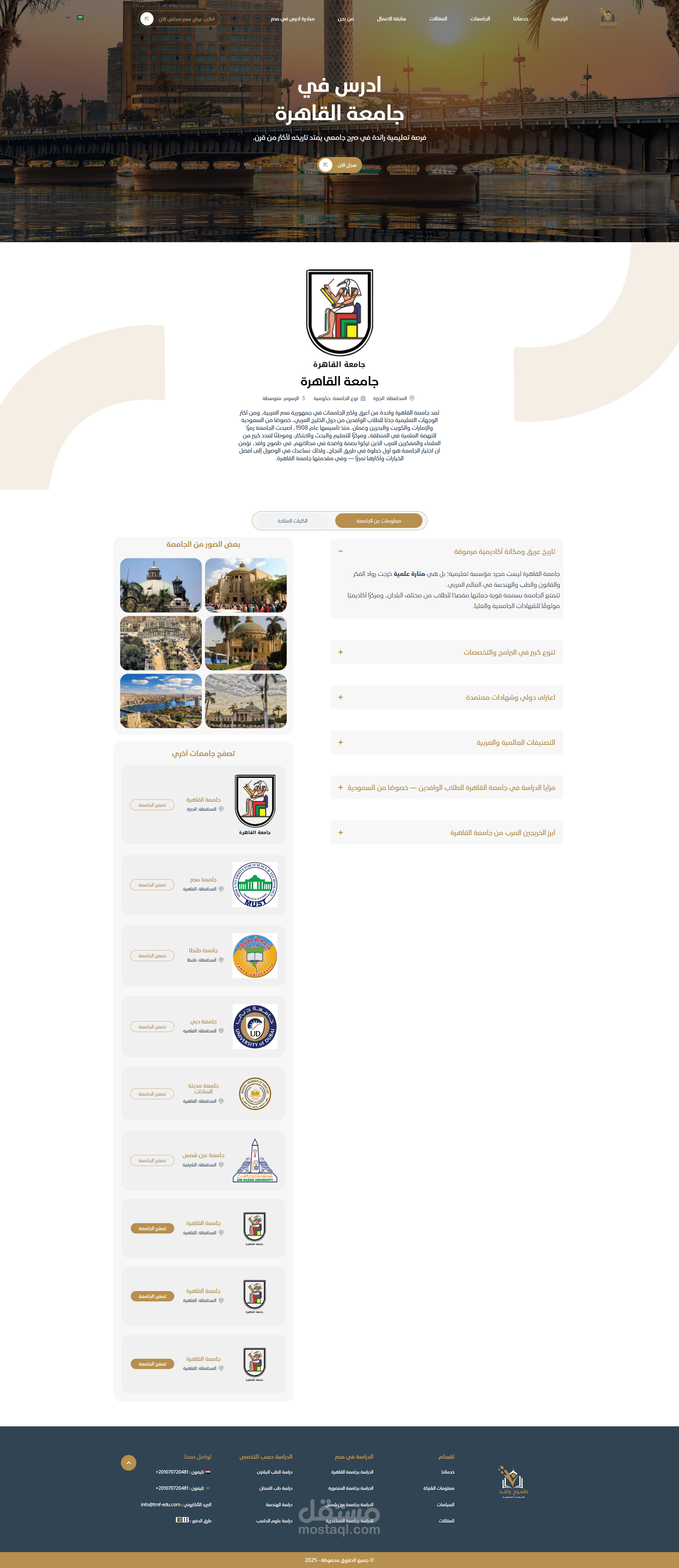 قمت بتطوير 100% من المنصة على ووردبريس بشكل مخصص لدعم الطلاب في استكشاف فرص الدراسة في مصر.